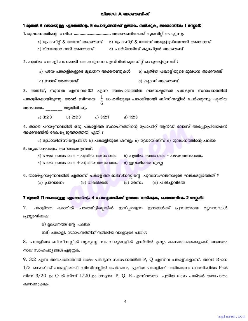 - Many 12th standard teachers of Kerala Board publish Kerala Syllabus 12th Standard Question Papers and Answers for Accountancy CA.