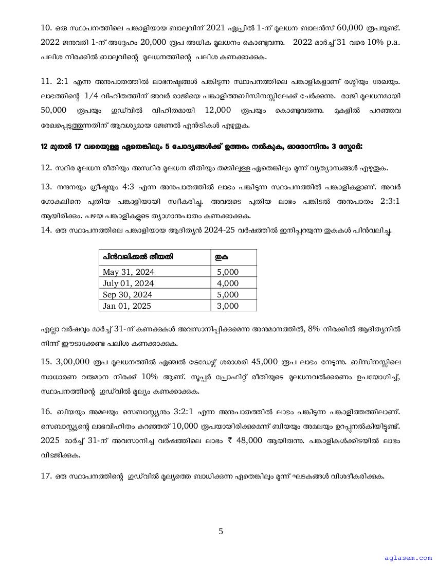 Class 12 Accountancy CA Onam Exam Question Paper 2024-25 Click Here to Download Question Paper PDF