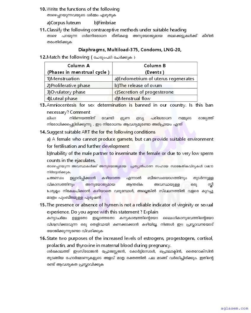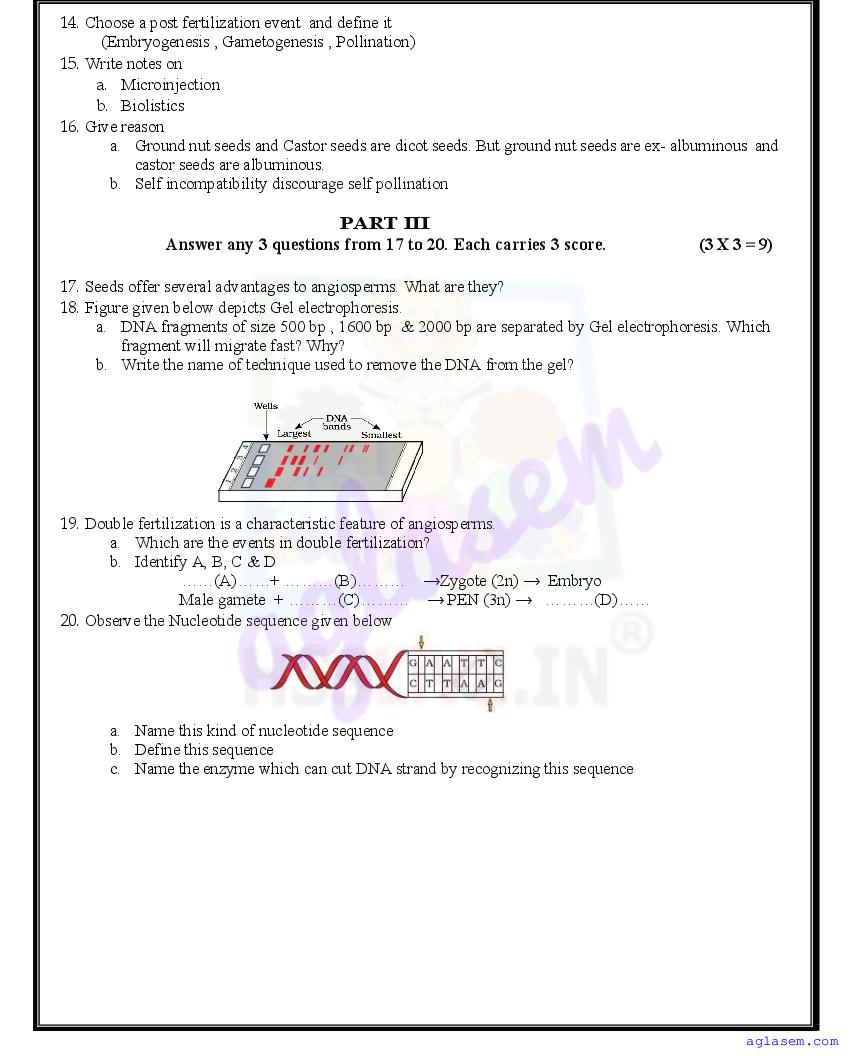 | Paper Here | Kerala Class 12 First Terminal Exam Biology Question Paper |