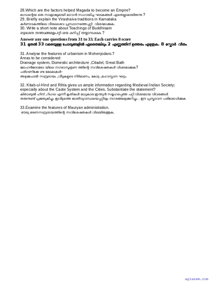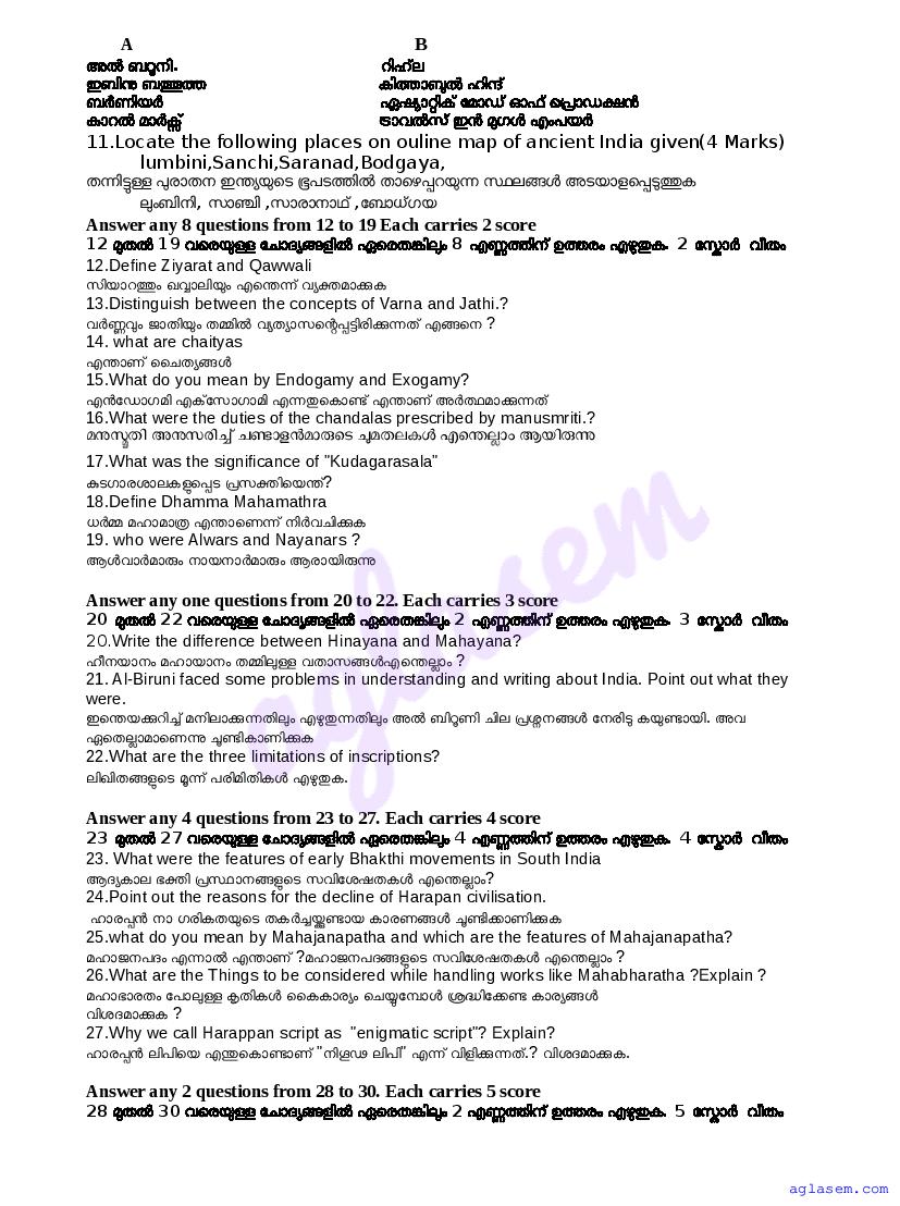 | Paper Here | Kerala Class 12 First Terminal Exam History Question Paper |