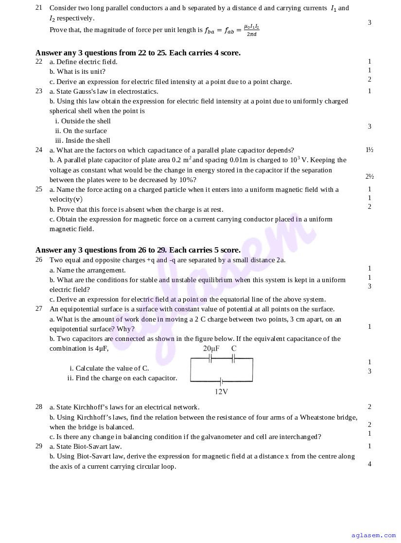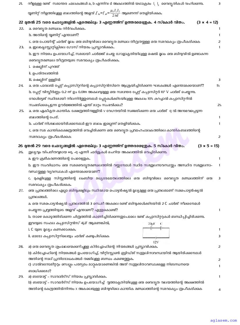 | Paper Here | Kerala Class 12 First Terminal Exam Physics Question Paper |