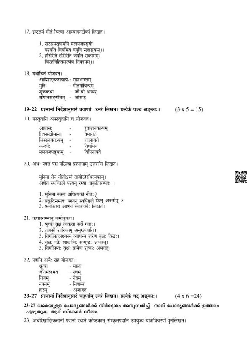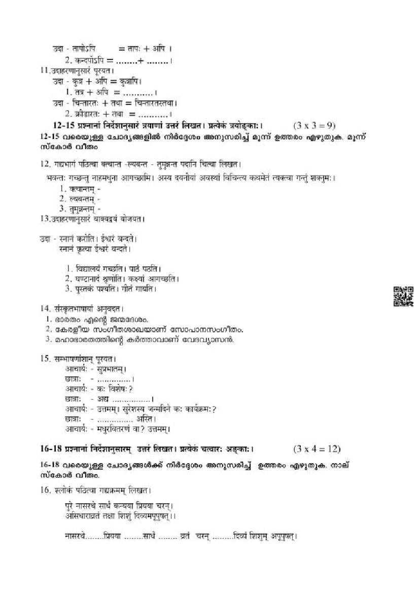 | Paper Here | Kerala Class 12 First Terminal Exam Sanskrit Question Paper |