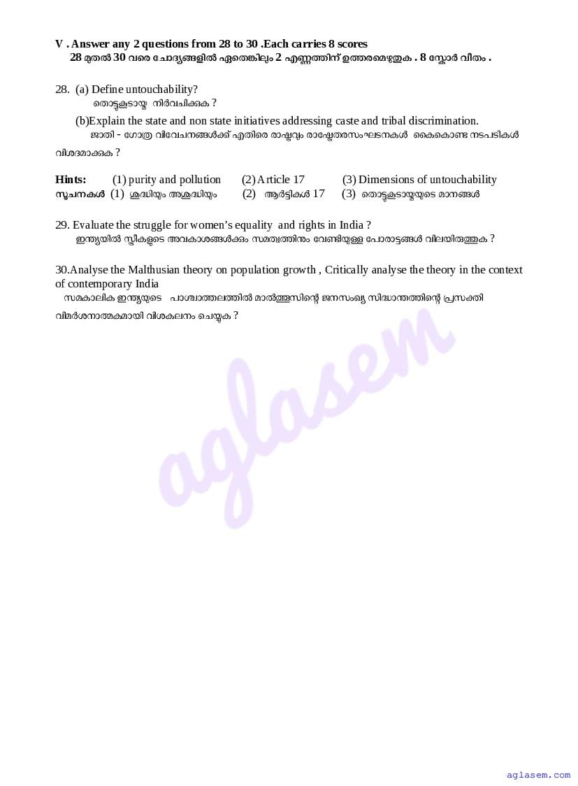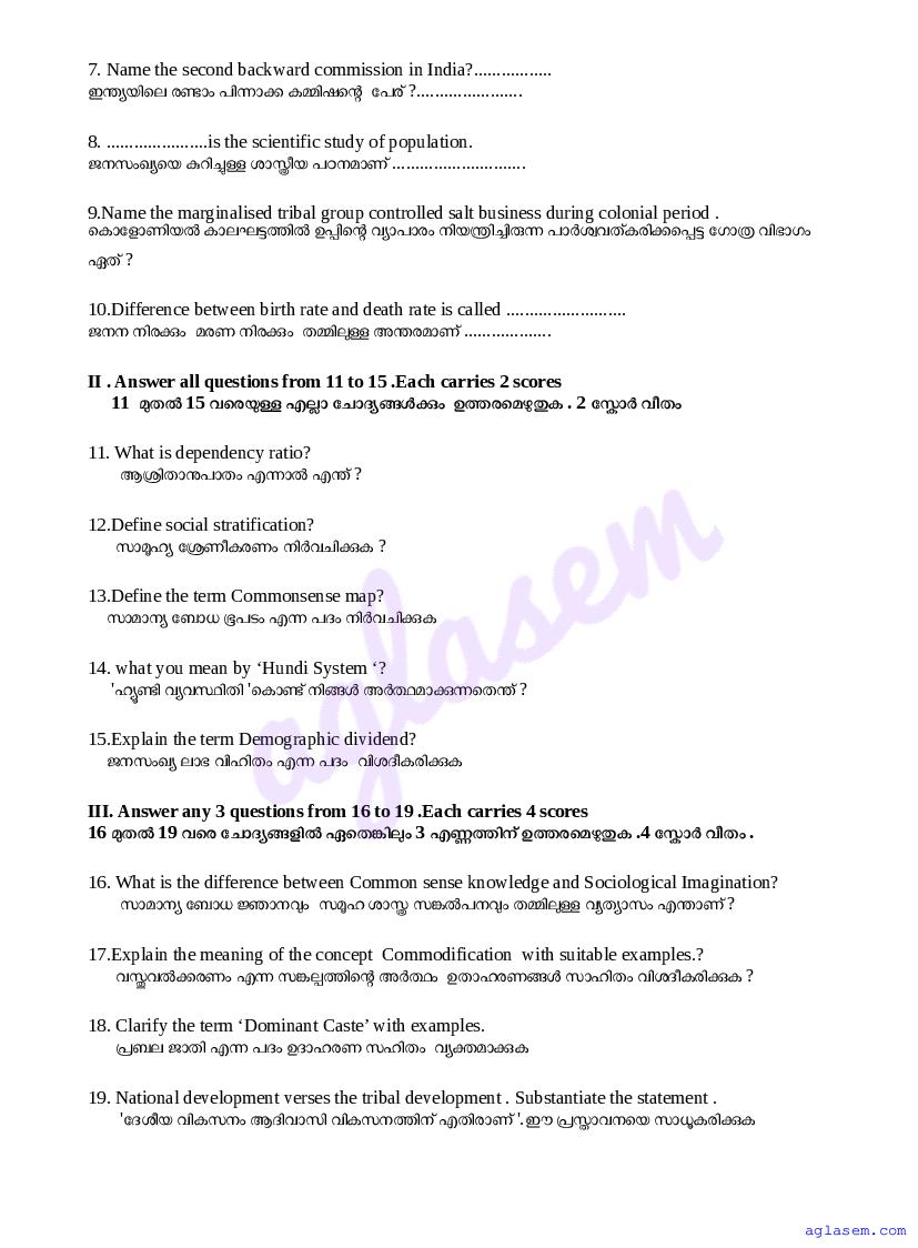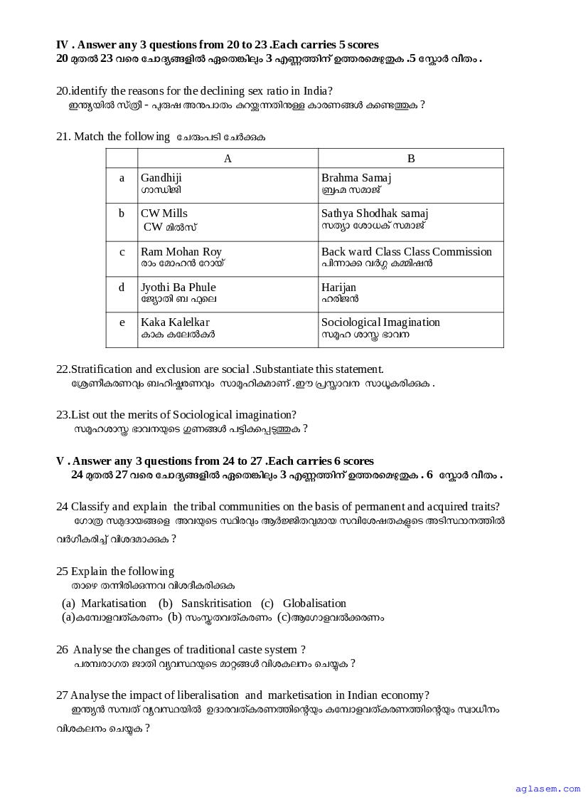 | Paper Here | Kerala Class 12 First Terminal Exam Sociology Question Paper |