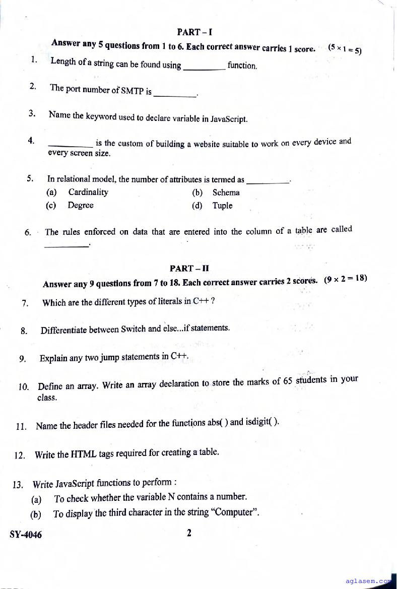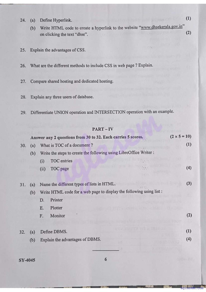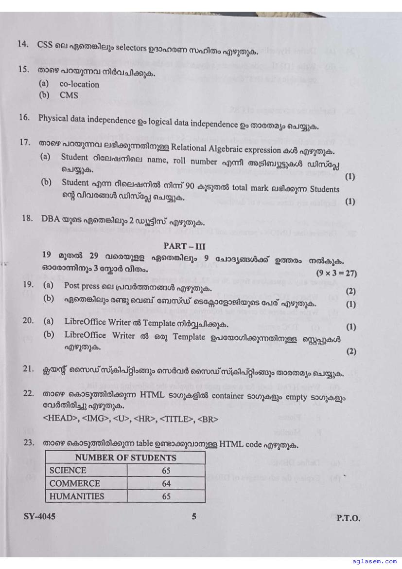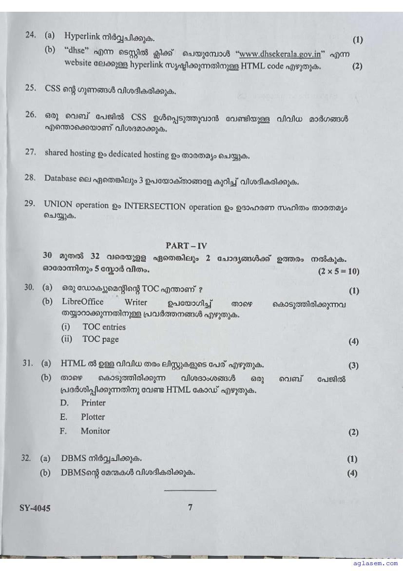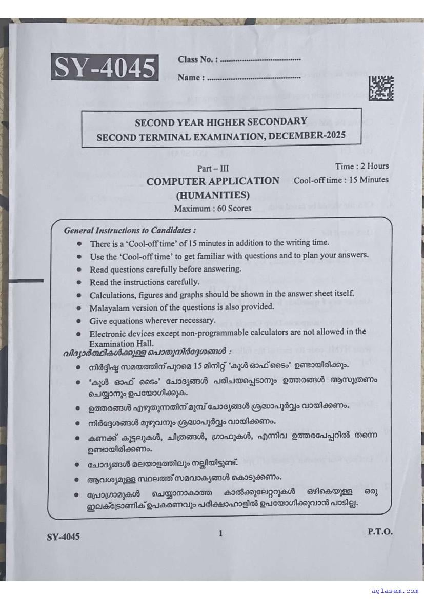 | Paper Here | Kerala Class 12 Second Terminal Exam Computer Application Question Paper |