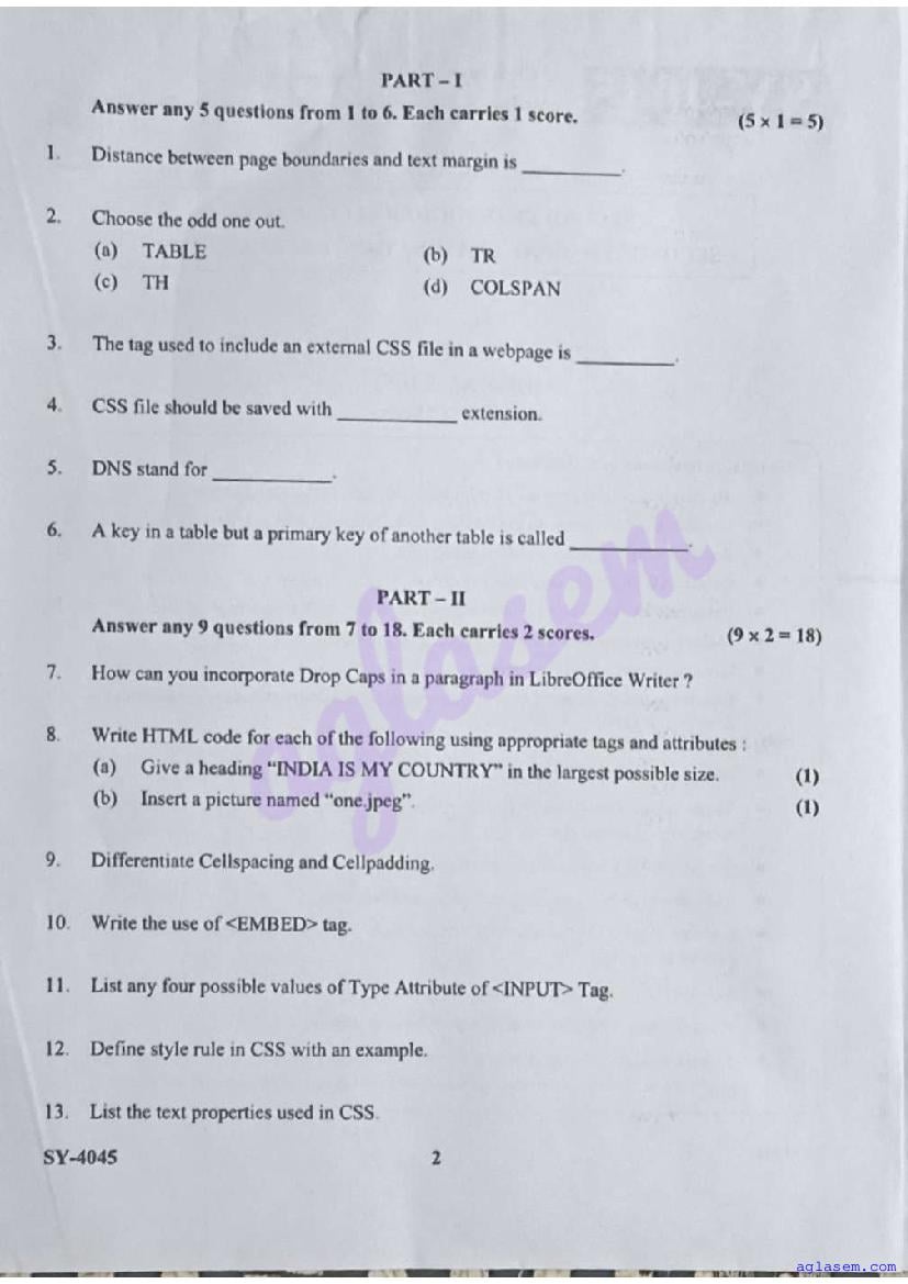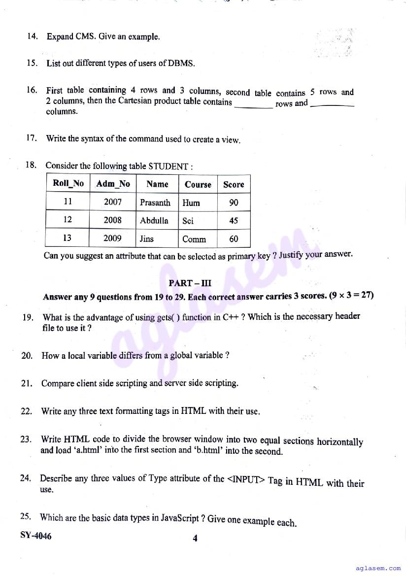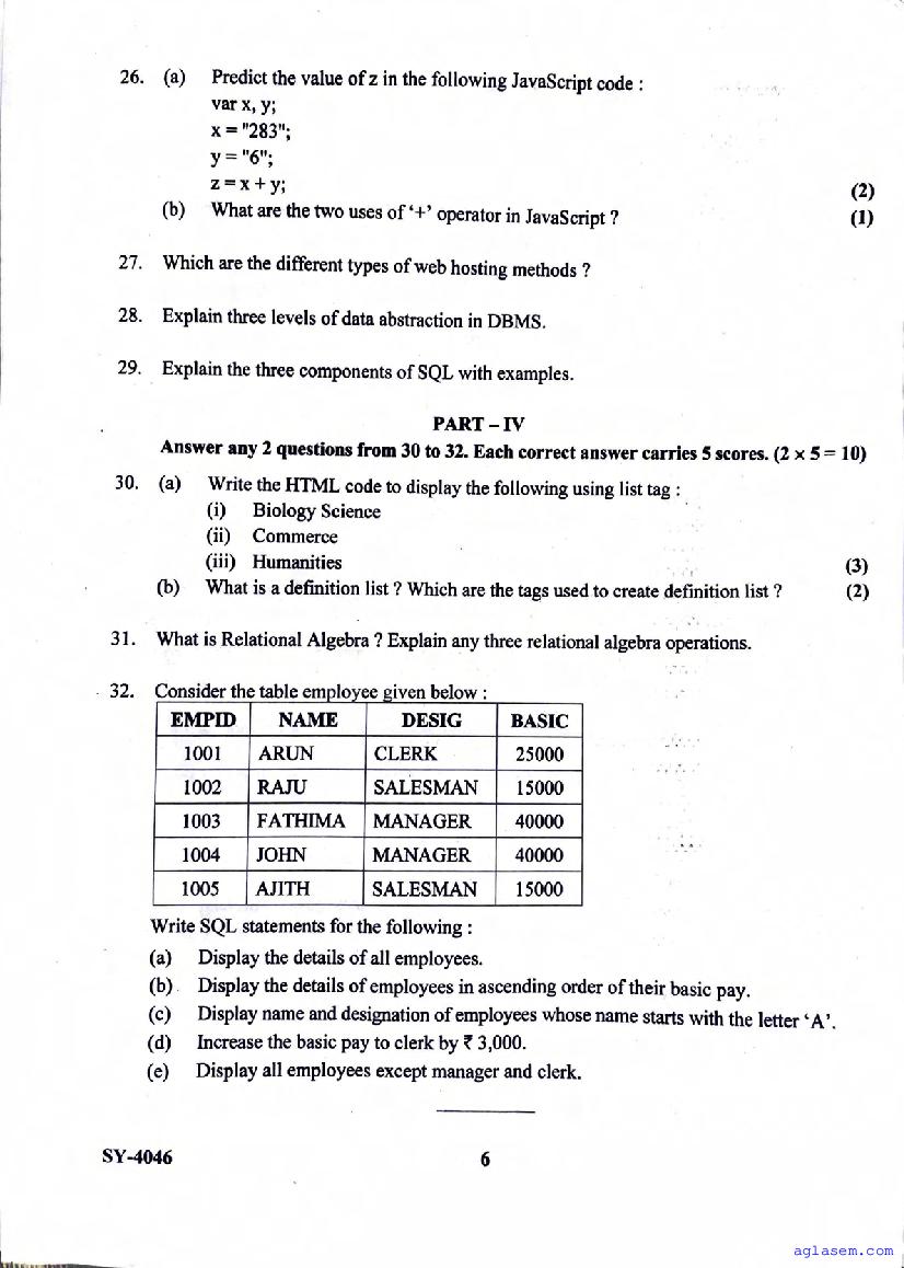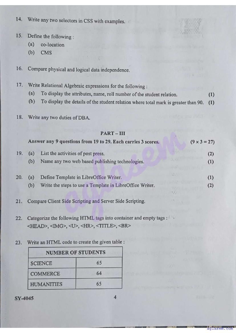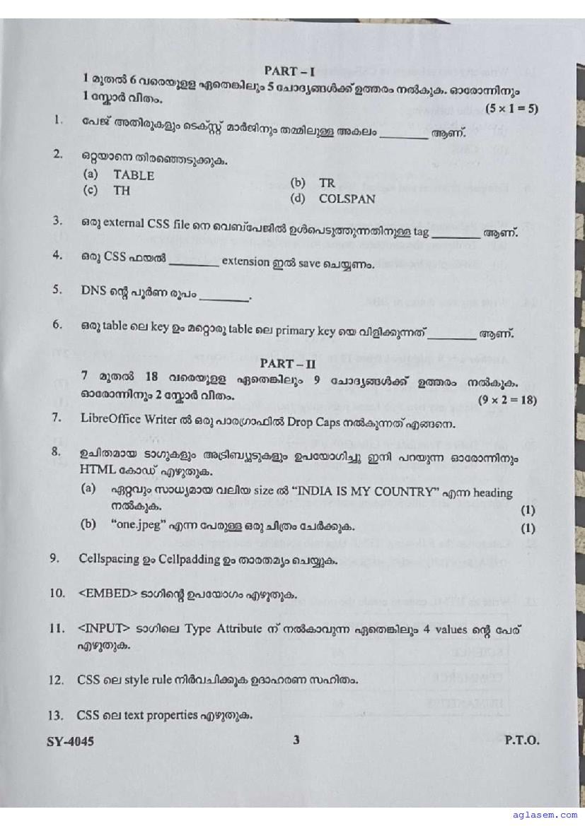 | Paper Here | Kerala Class 12 Second Terminal Exam Computer Application Question Paper |