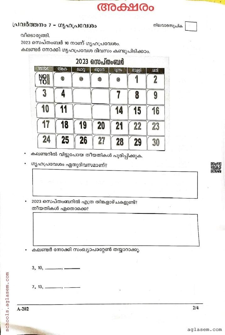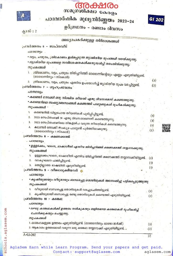 | Paper Here | Kerala Class 2 First Terminal Exam Integration Day 2 Question Paper |