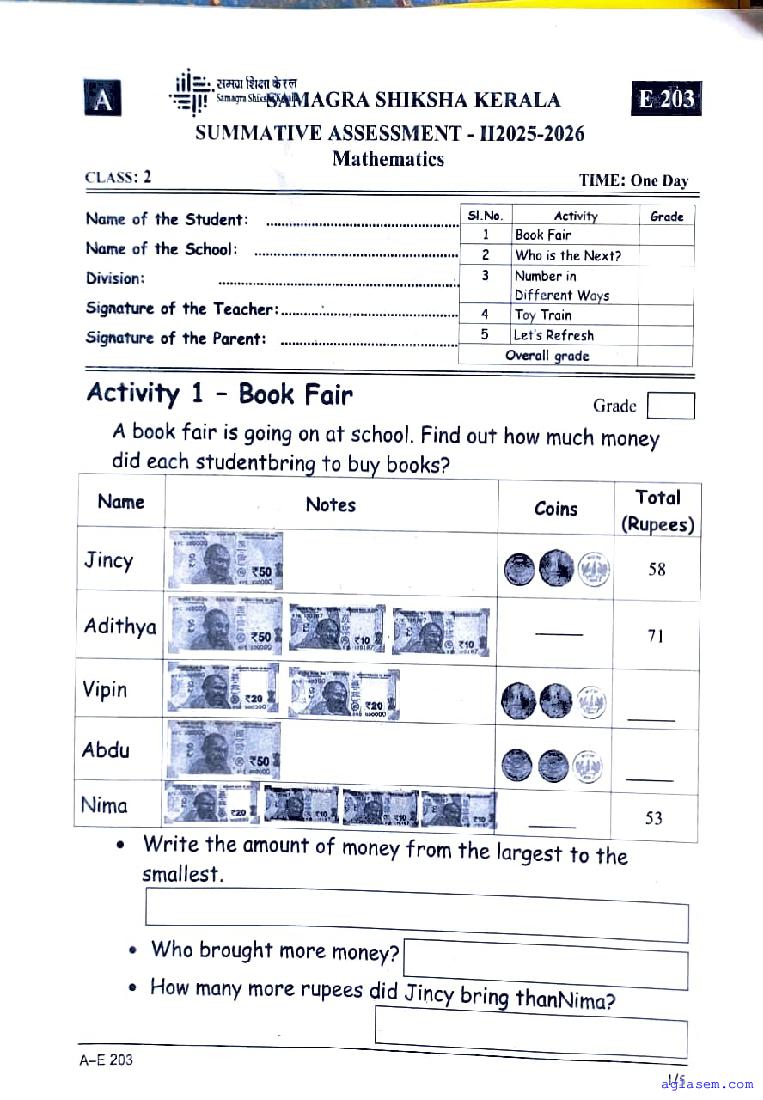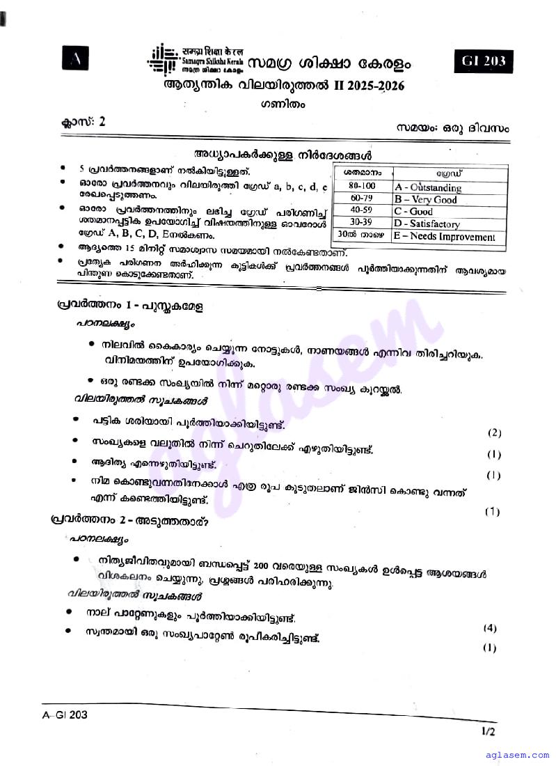 | Paper Here | Kerala Class 2 Second Terminal Exam Maths Question Paper |