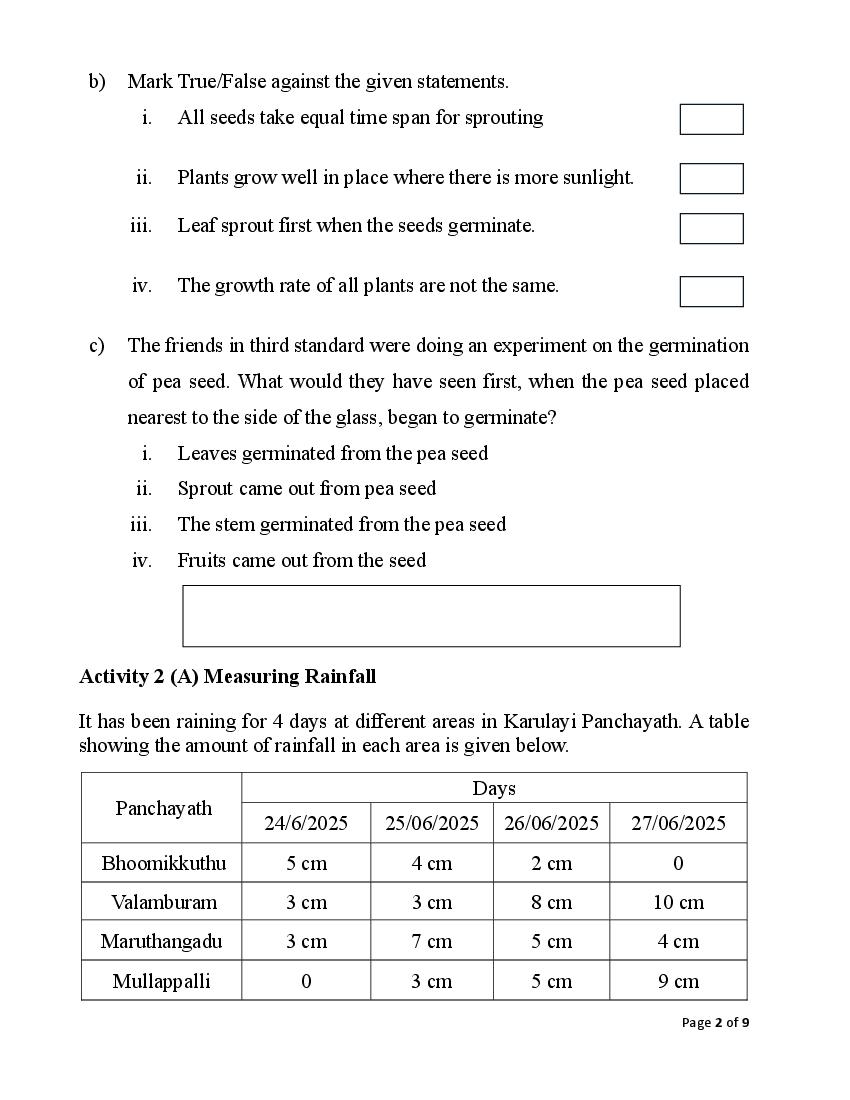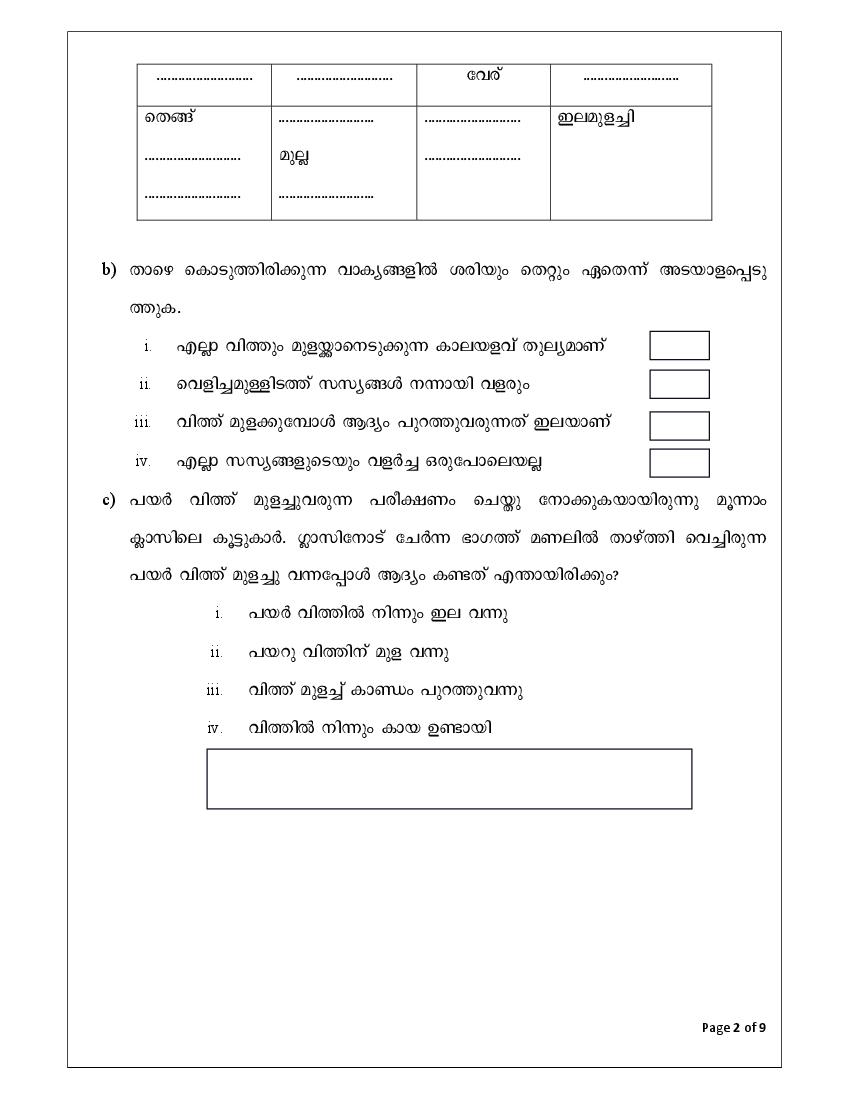 - Kerala 3th Standard EVS Sample Paper PDF