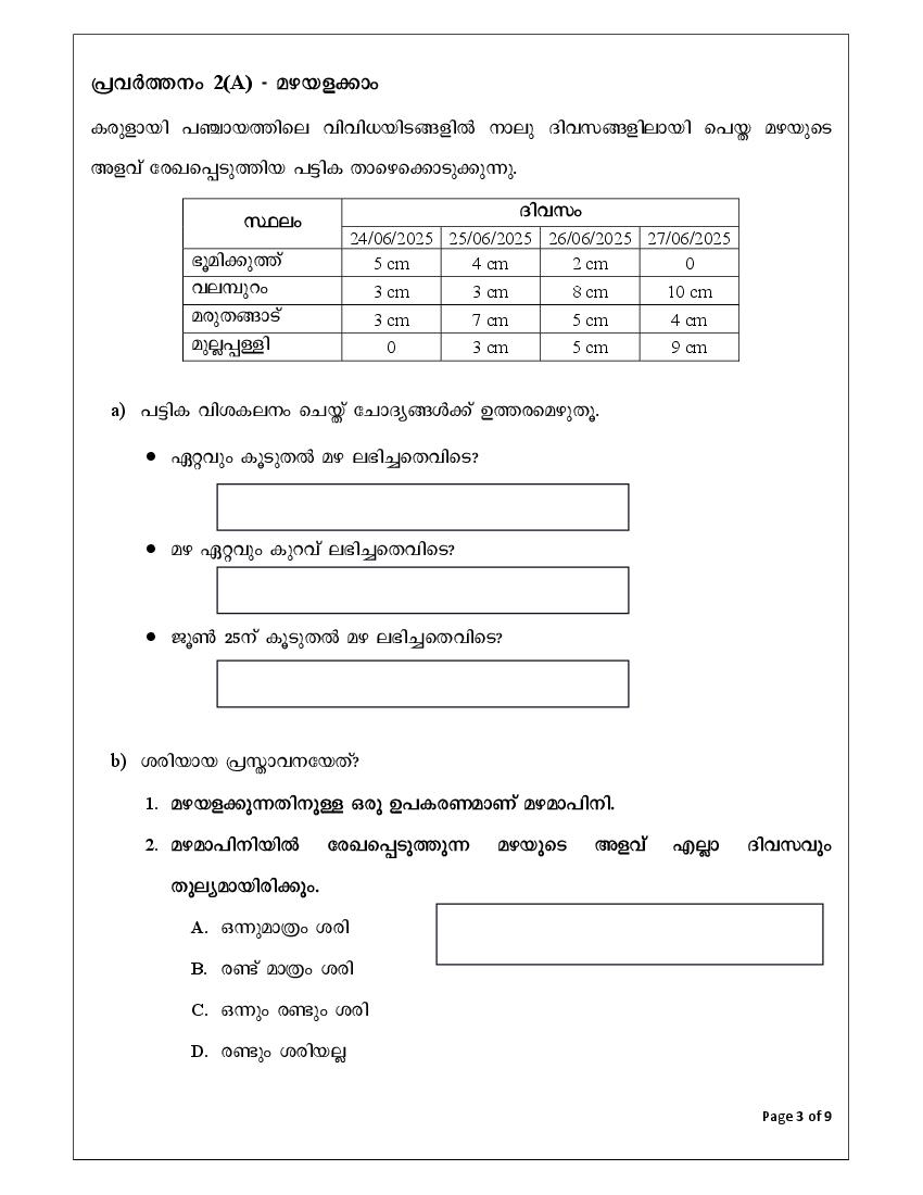 Note: This is a model paper for practice. For actual previous year papers, check Kerala Class 3 Onam Exam Question Papers & Christmas Exam Question Papers.
