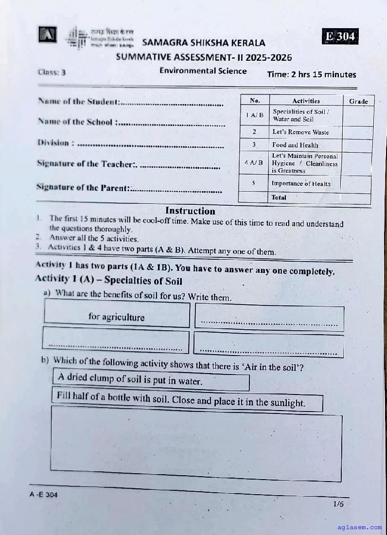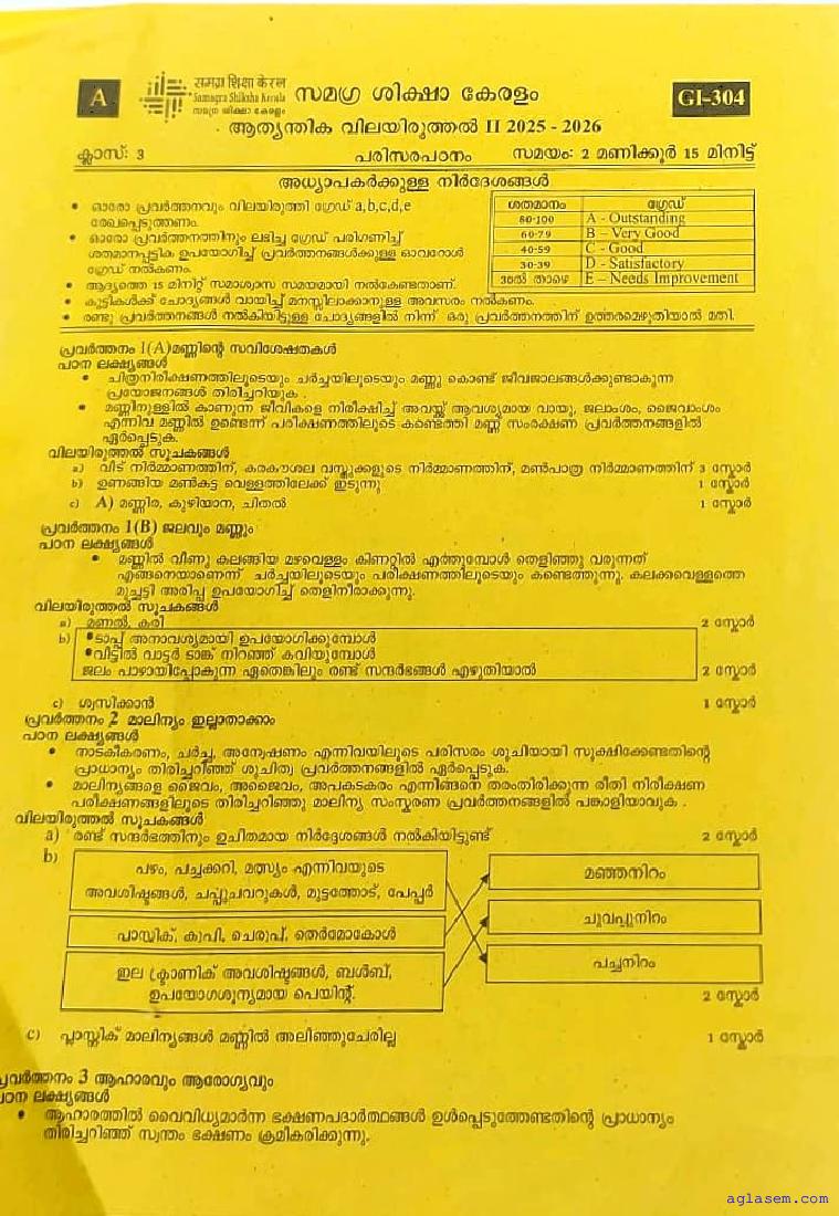 | Paper Here | Kerala Class 3 Second Terminal Exam EVS Question Paper |