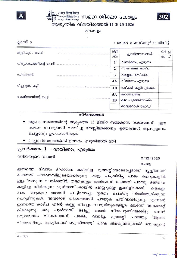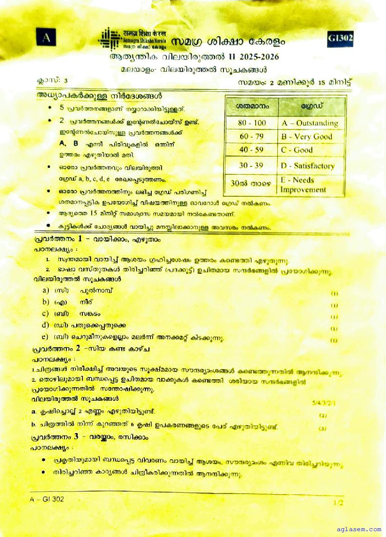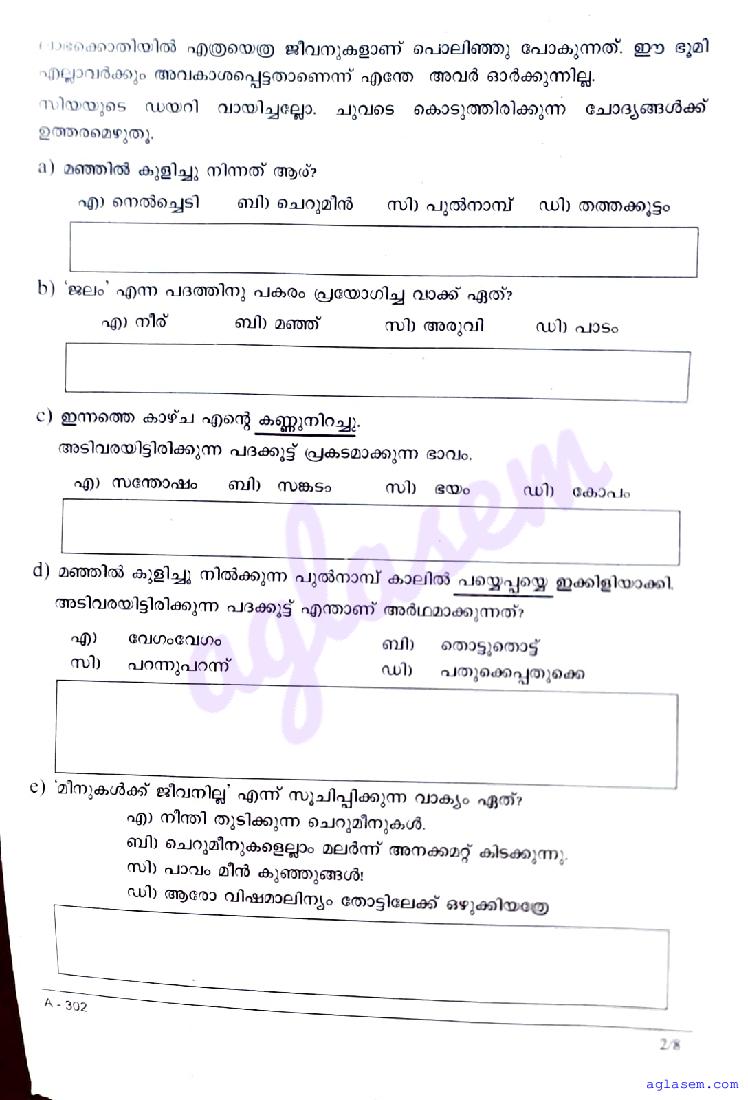 | Paper Here | Kerala Class 3 Second Terminal Exam Malayalam Question Paper |