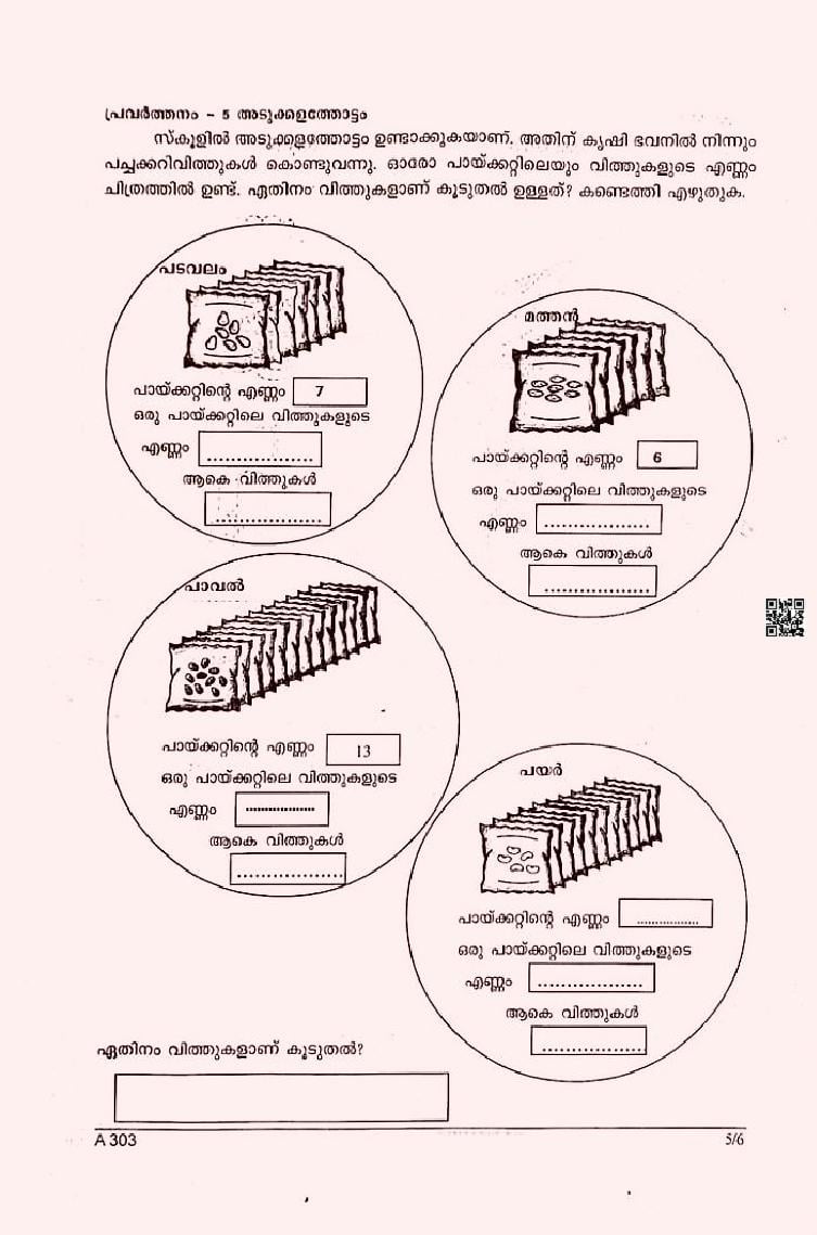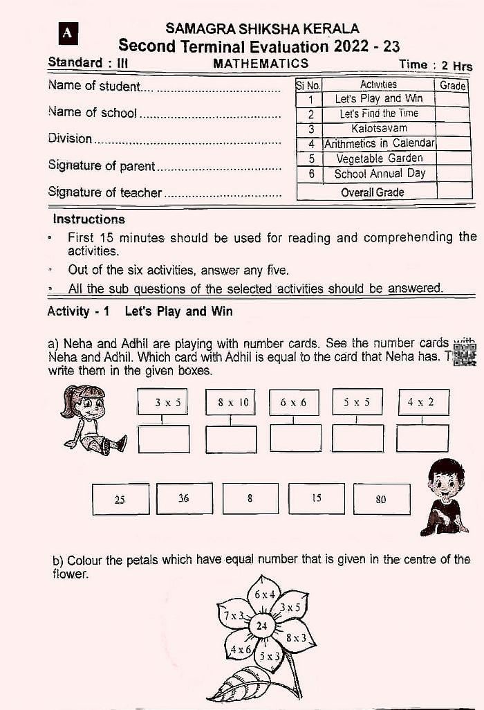 Paper HereKerala Class 3 Second Terminal Exam Maths Question Paper