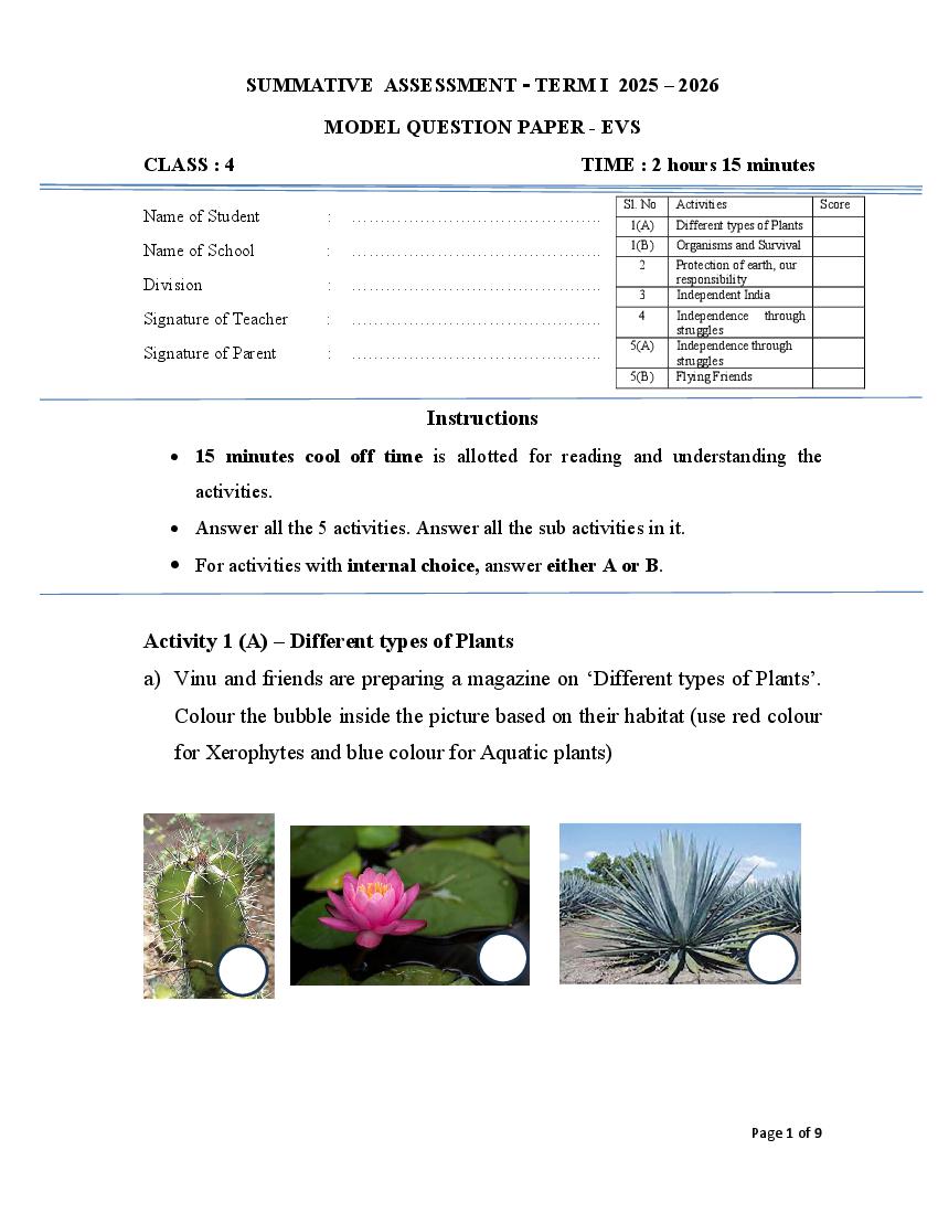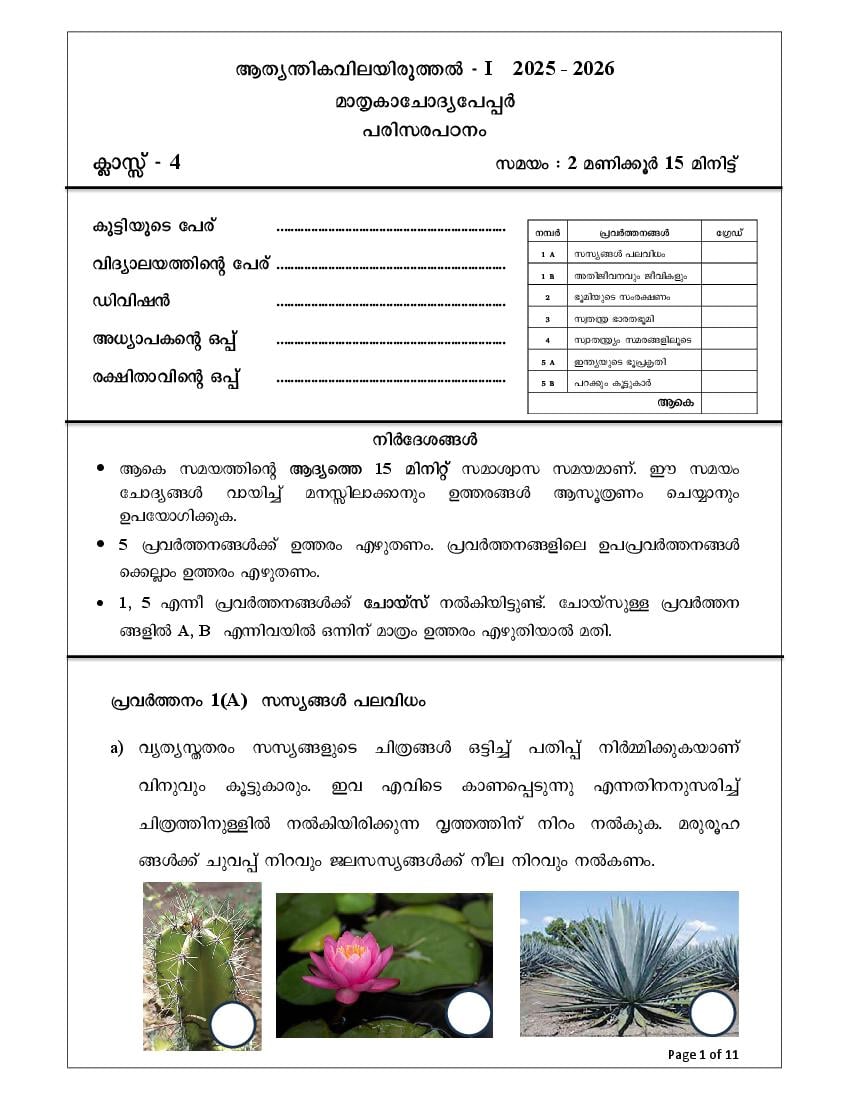 - Kerala Class 4 EVS Model Paper 2026