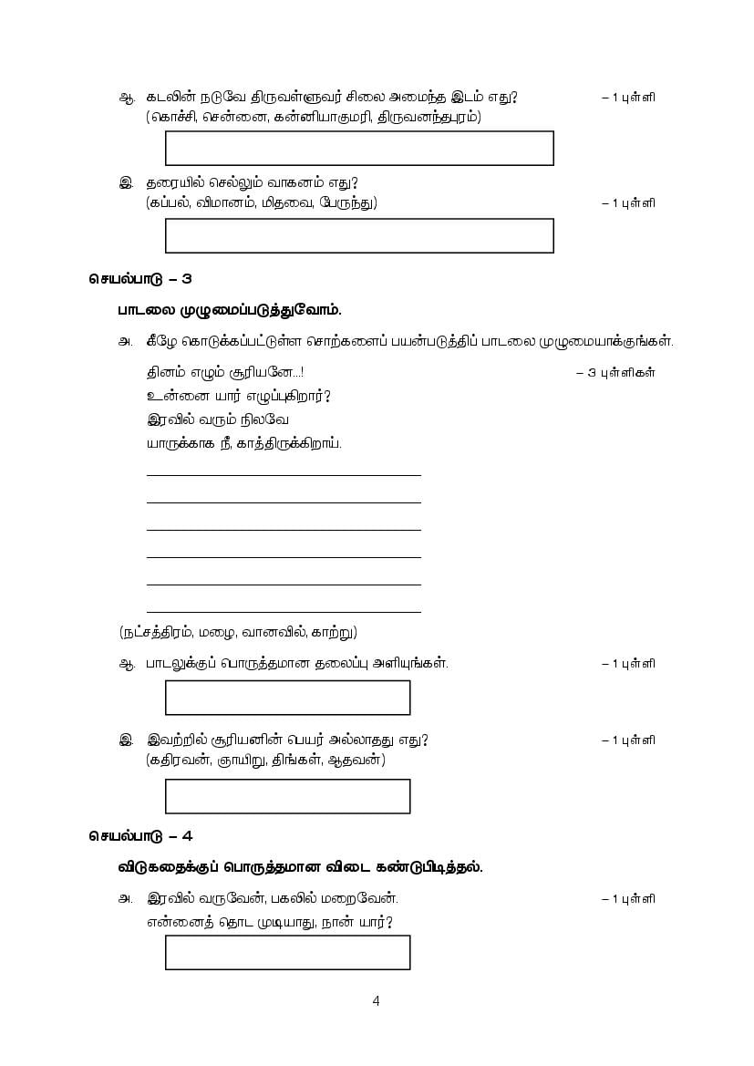 - Class 4 Tamil Onam Exam Practice Paper