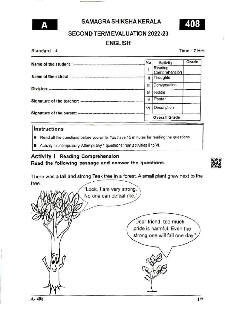 Kerala Class 4 Second Term Question Paper 2022 English View Download