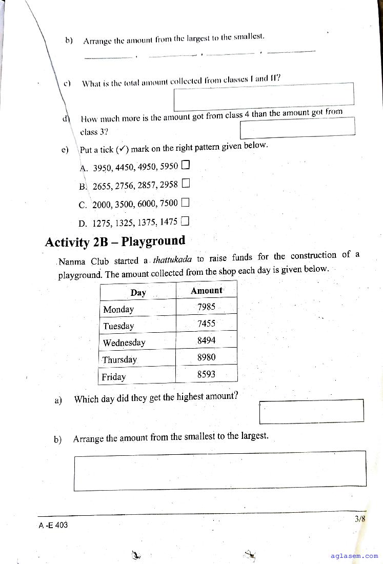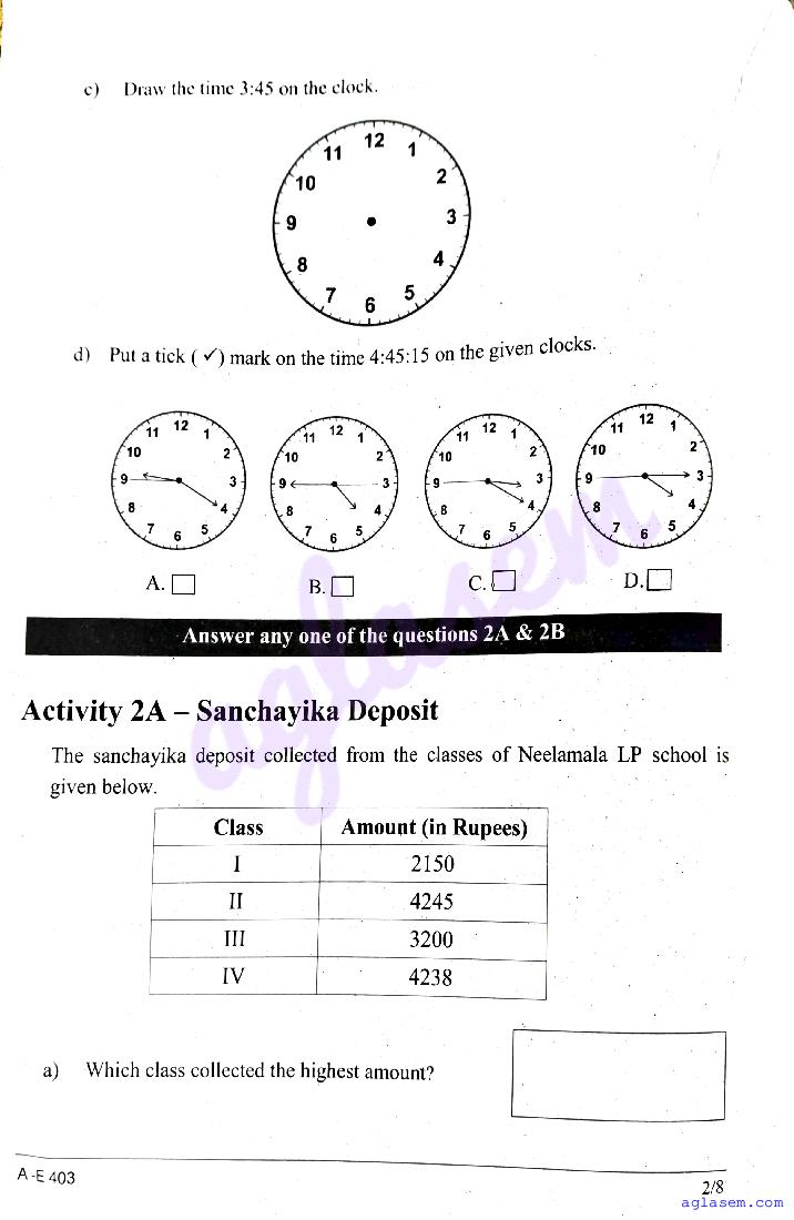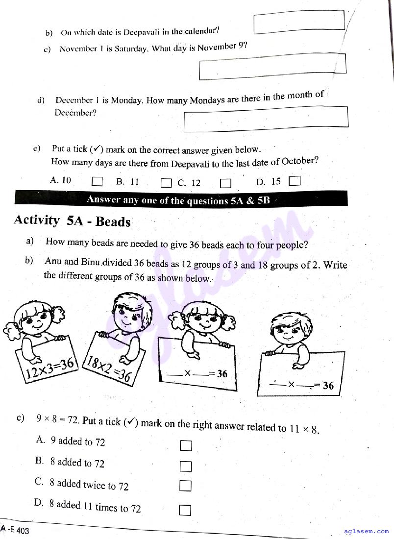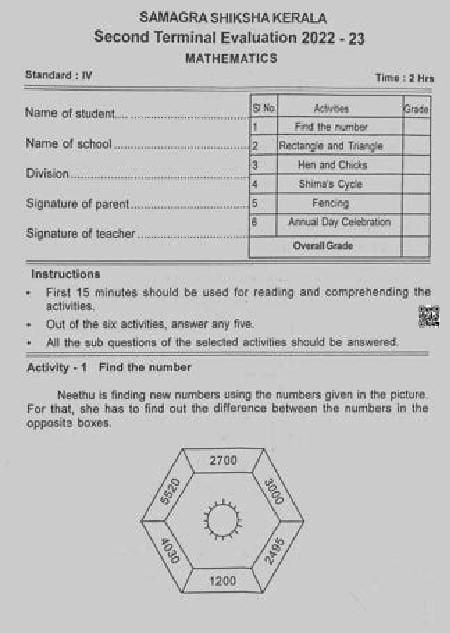 Paper HereKerala Class 4 Second Terminal Exam Maths Question Paper