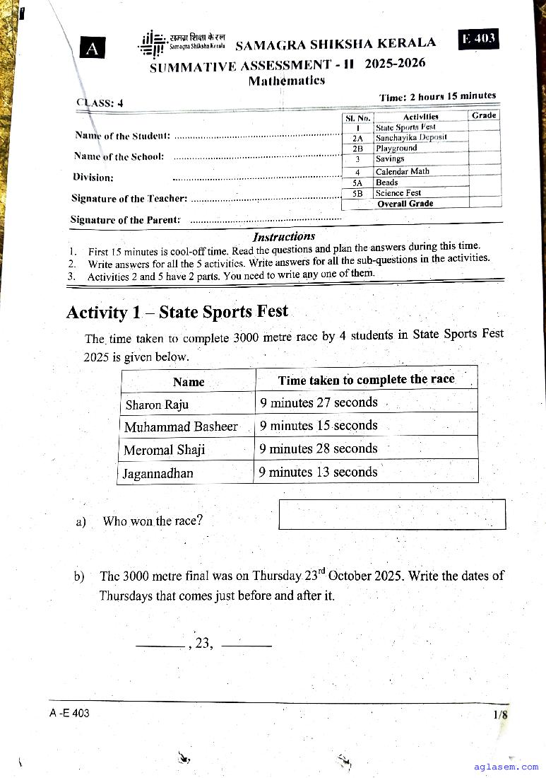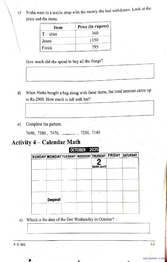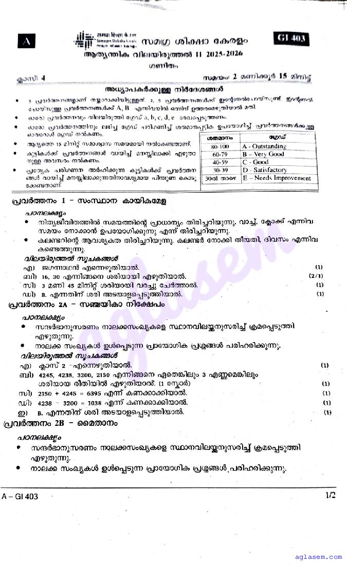 Class 4 Maths Christmas Exam Question Paper 2026 is published after the exam. You can download the Kerala Std 4 Second Term Maths Question Paper PDF from Aglasem. The latest and previous year question paper of Christmas Exam for class 4 Maths helps you prepare for the upcoming Second Term Maths test. After studying with this Kerala Syllabus 4th Standard Maths Question Paper, you can download Christmas Exam Question Paper for Class 4 for other subjects as well.