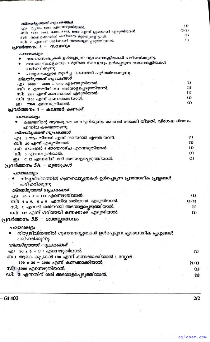 Kerala Std 4 Second Term Maths Question Paper with Answer Keys