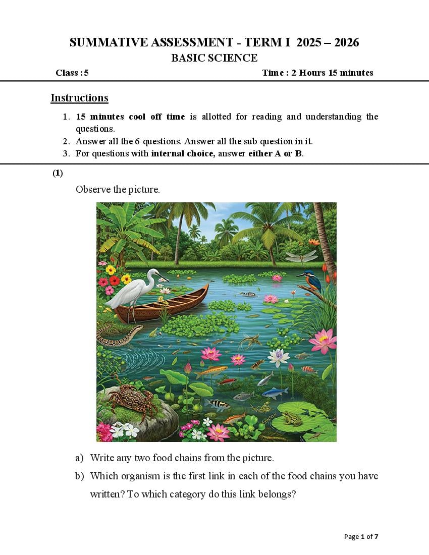 This is the latest model question paper for Std 5 Basic Science Onam Exam 2026. Students should practice this paper to get familiar with the exam format.