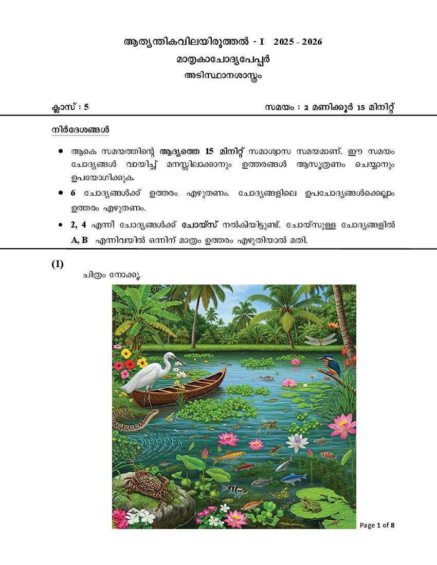 Kerala Class 5 Basic Science Onam Exam Model Question Paper 2026