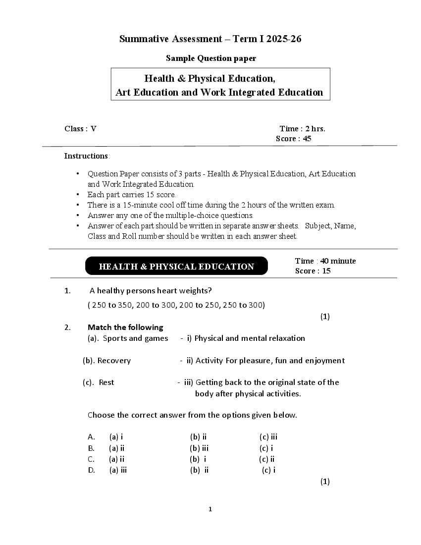 Students can download the Class 5 Health & Physical Education, Art Education, and Work Integrated Education First Term Exam Model Question Paper 2026 PDF and practice regularly to improve their exam performance.