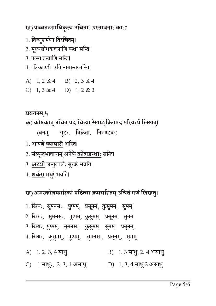 - Kerala 5th Standard Sanskrit Sample Paper PDF