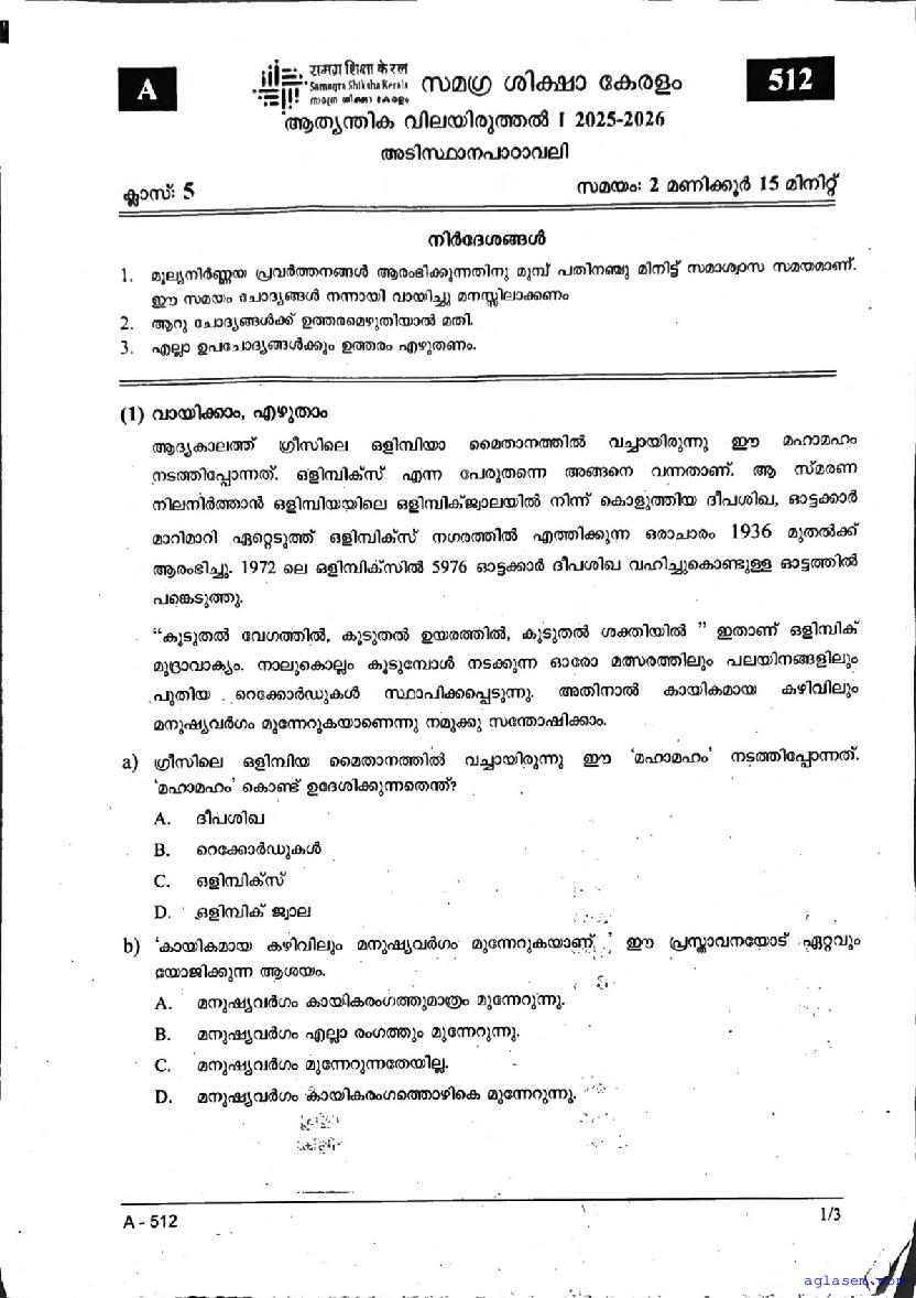 - Kerala Class 5 Question Papers