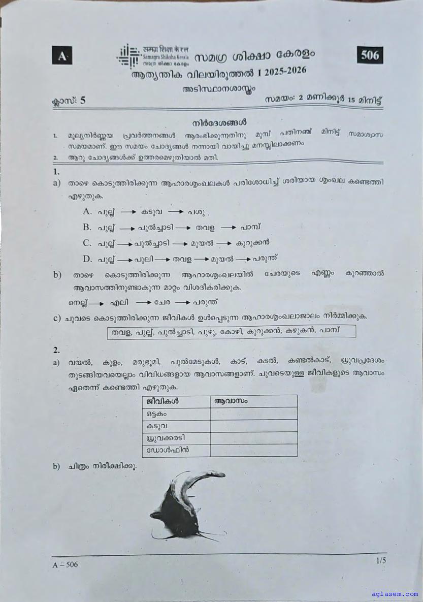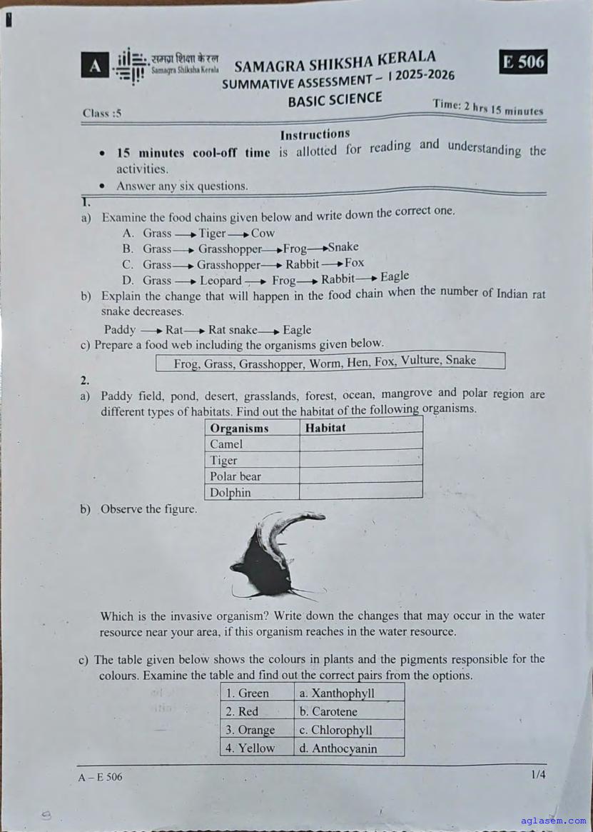| Paper Here | Kerala Class 5 First Terminal Exam Basic Science Question Paper |