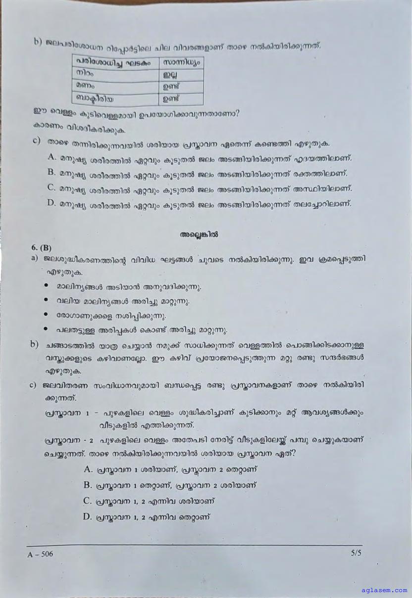 Kerala Board Question Papers