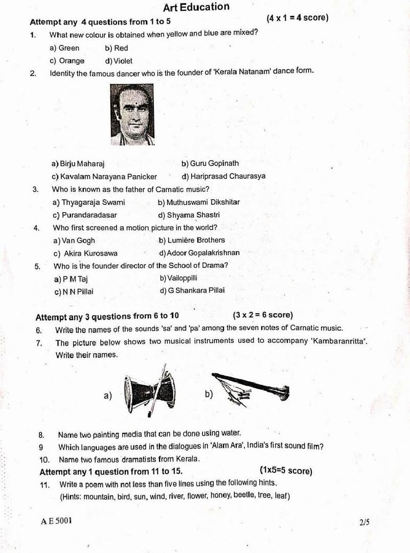 | Educational Resource Here | Kerala Syllabus Previous Question Papers Class 5 Health and Physical Education, Art Education, Work Education |