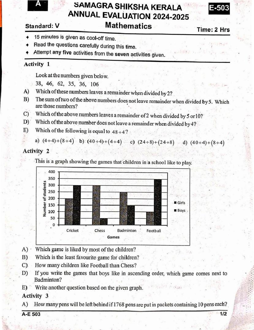 Kerala Class 5 Maths Question Paper 2025