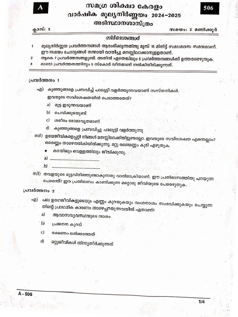 | More Papers of This Class | Kerala Syllabus Previous Question Papers Class 5 |