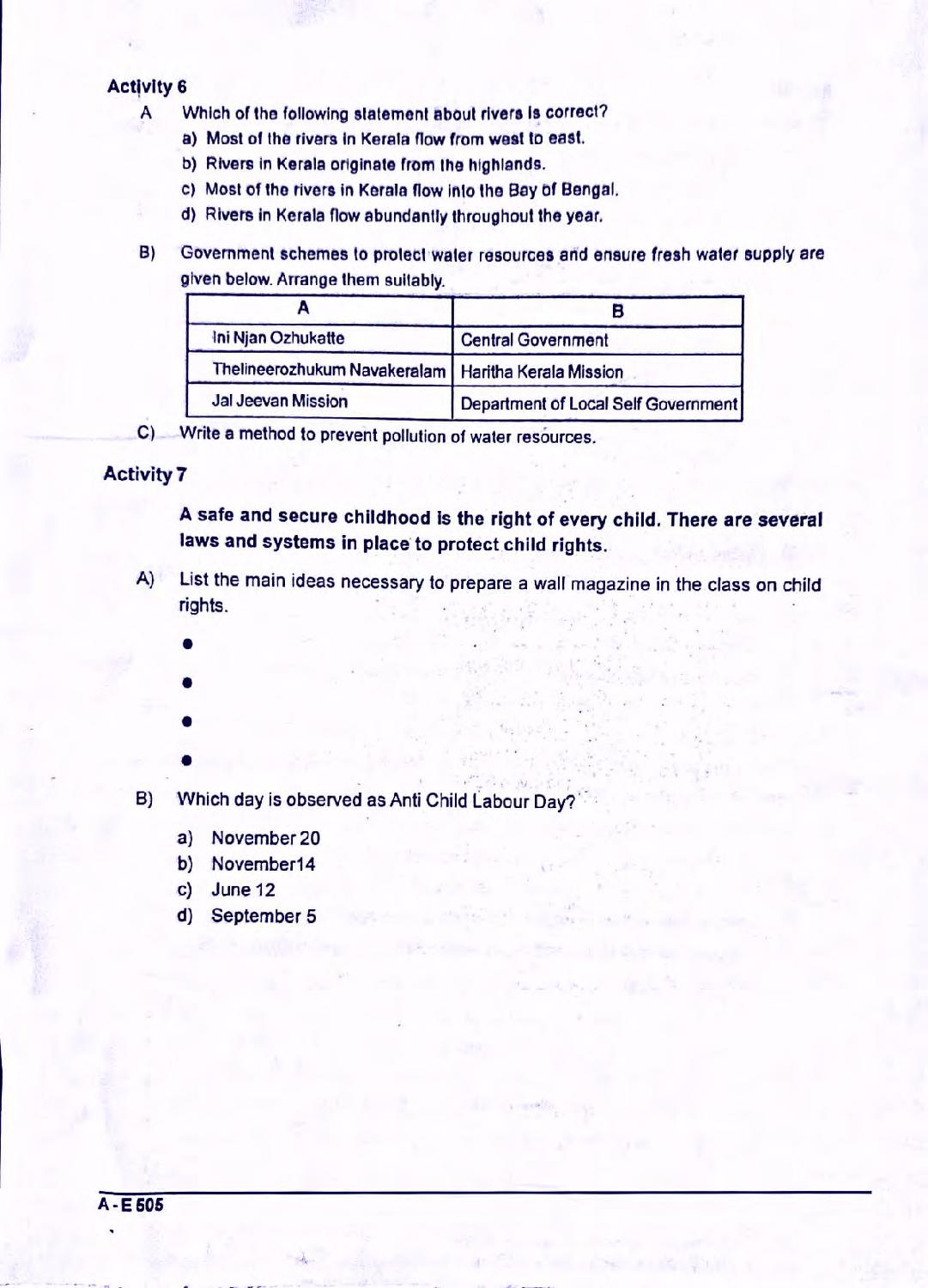 - Kerala Class 7 Question Papers