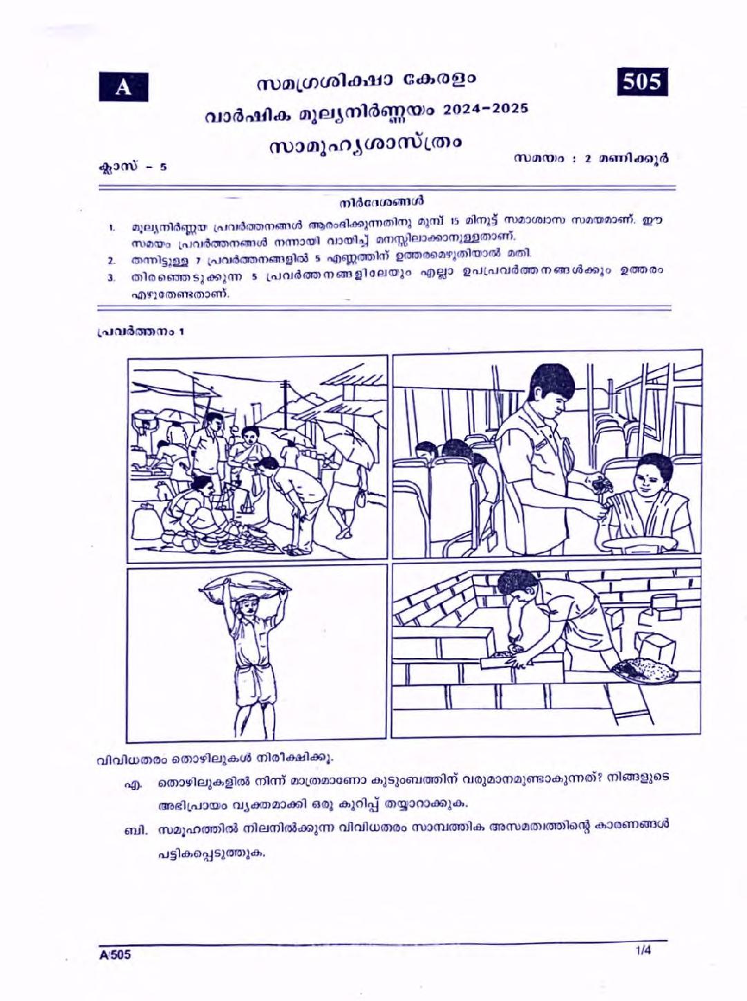 Kerala Class 5 Social Science Question Paper 2025 PDF