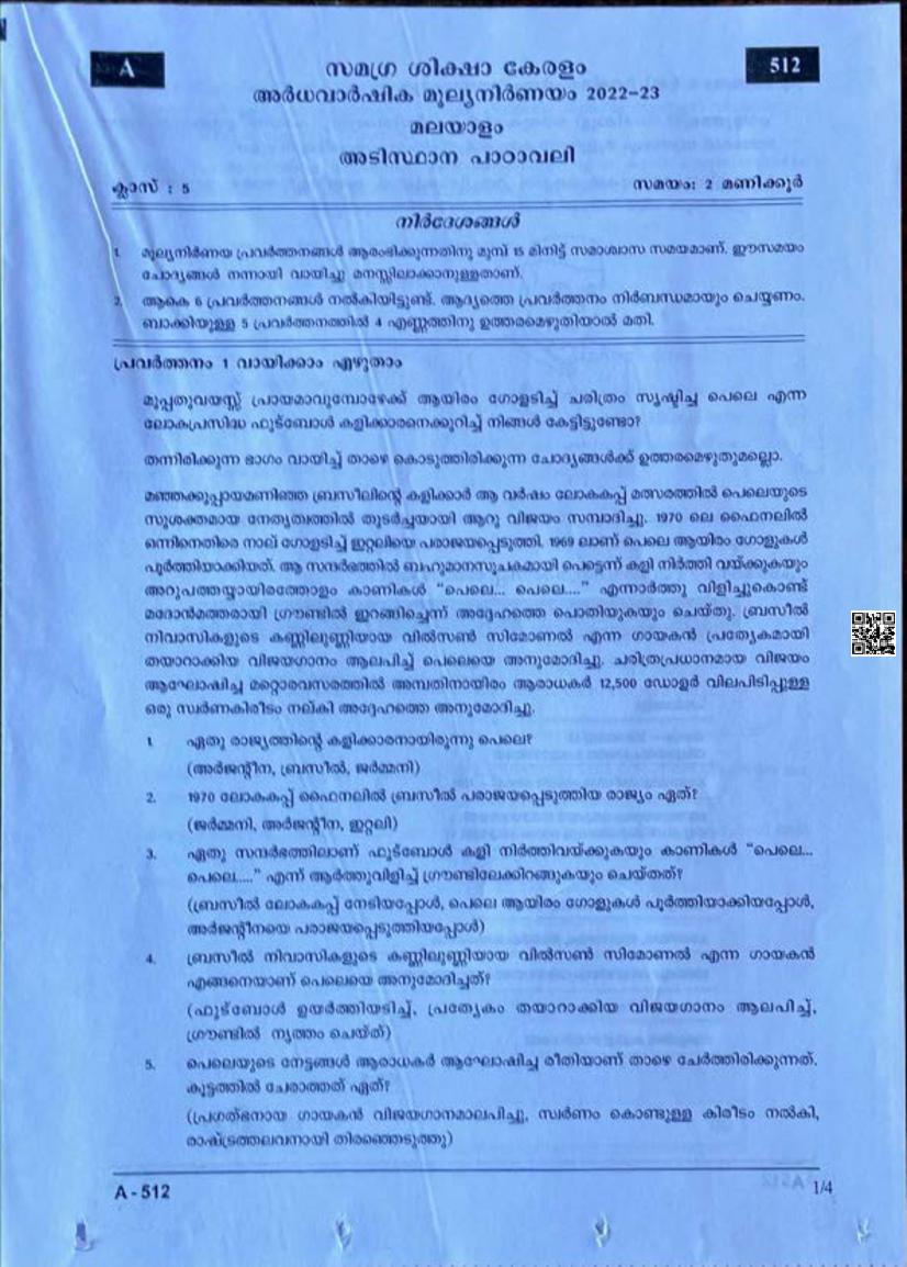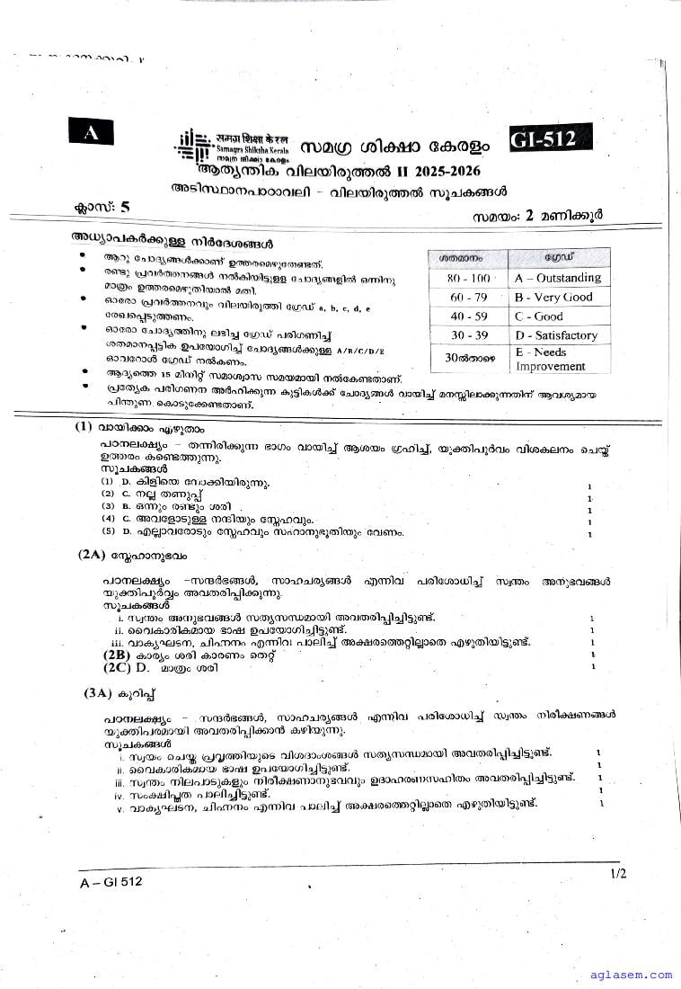 | Paper Here | Kerala Class 5 Second Terminal Exam Malayalam II Question Paper |