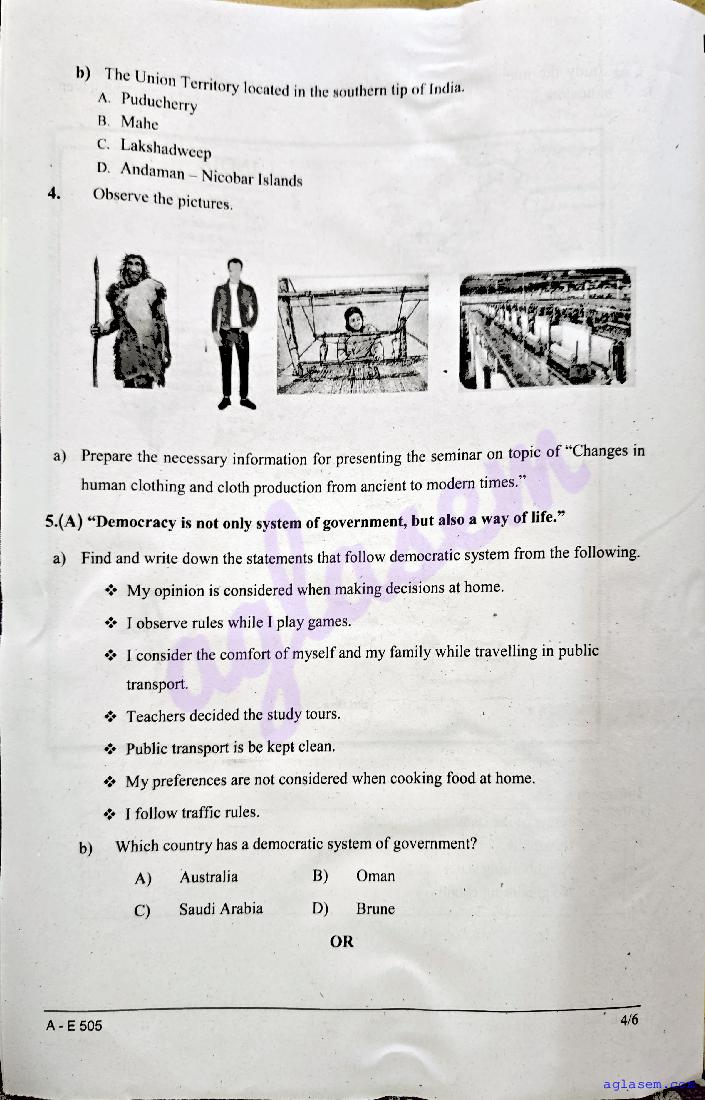 Kerala Std 5 Second Term Social Studies Question Paper with Answer Keys