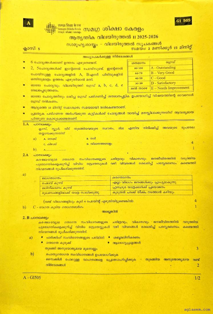 | Paper Here | Kerala Class 5 Second Terminal Exam Social Studies Question Paper |