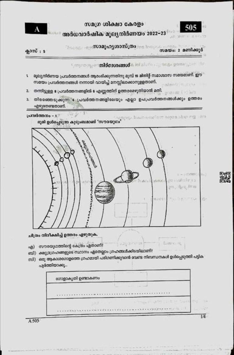 Kerala Class 5 Second Term Question Paper 2022 Social Studies View Download