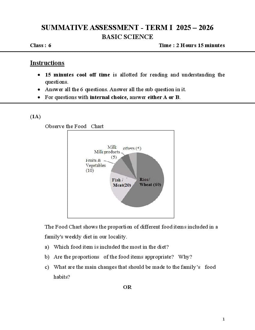 This is the latest model question paper for Std 6 Basic Science Onam Exam 2026. Students should practice this paper to get familiar with the exam format.