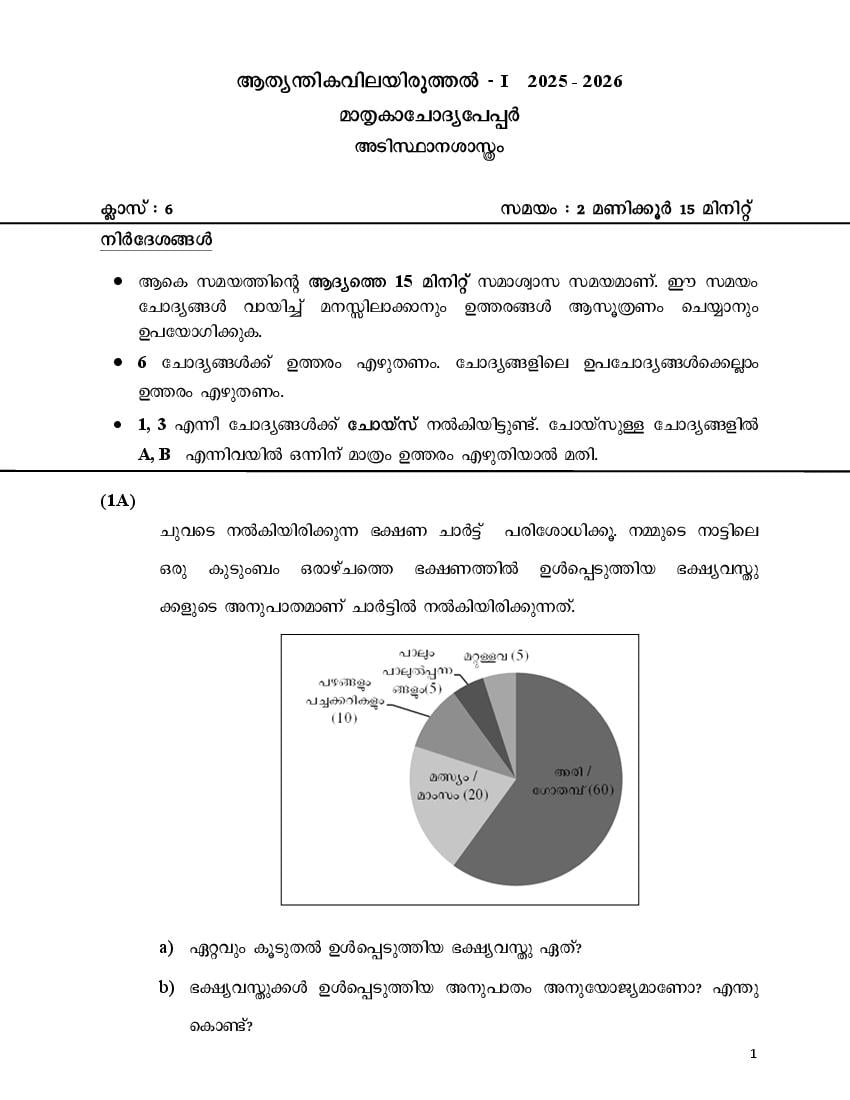 Note: This is a model paper for practice. For actual previous year papers, check Kerala Class 6 Onam Exam Question Papers & Christmas Exam Question Papers.