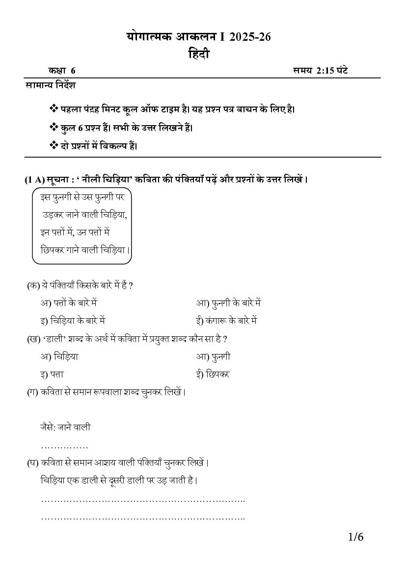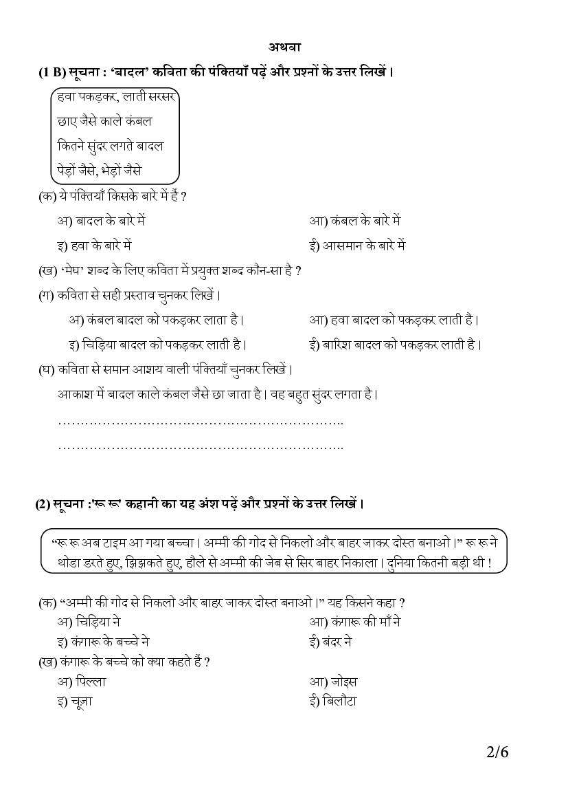 - Class 6 Hindi Onam Exam Practice Paper
