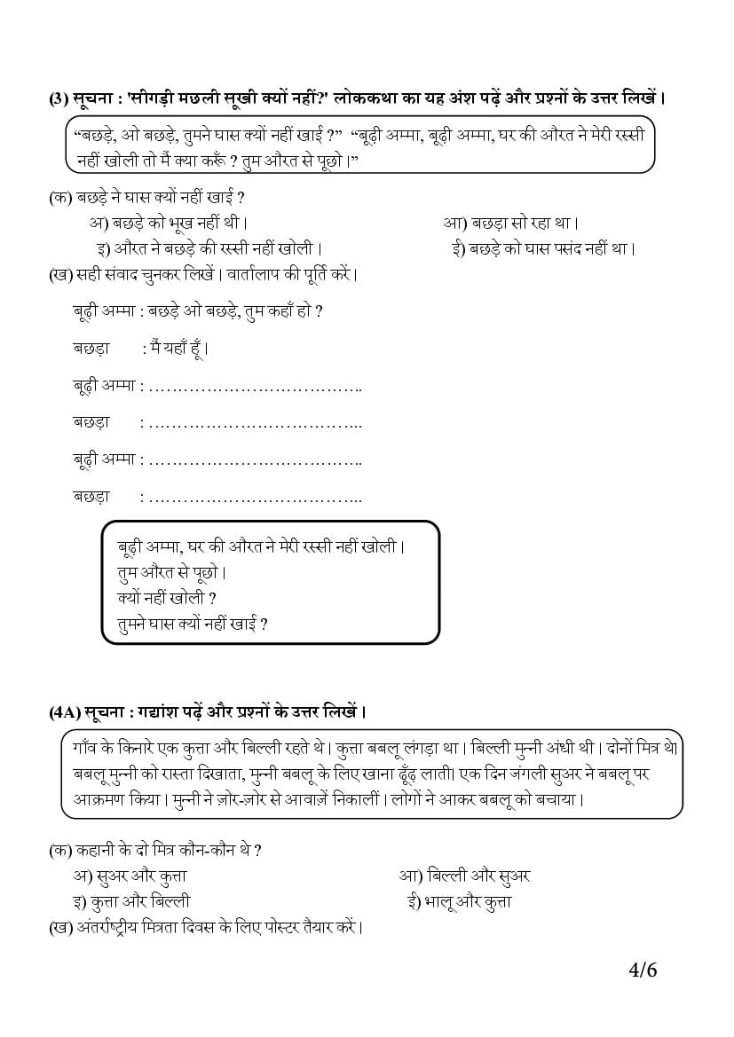 - Kerala 6th Standard Hindi Sample Paper PDF