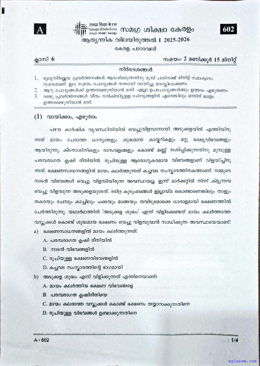 Kerala Class 6 First Term Question Paper 2025 Malayalam I View Download