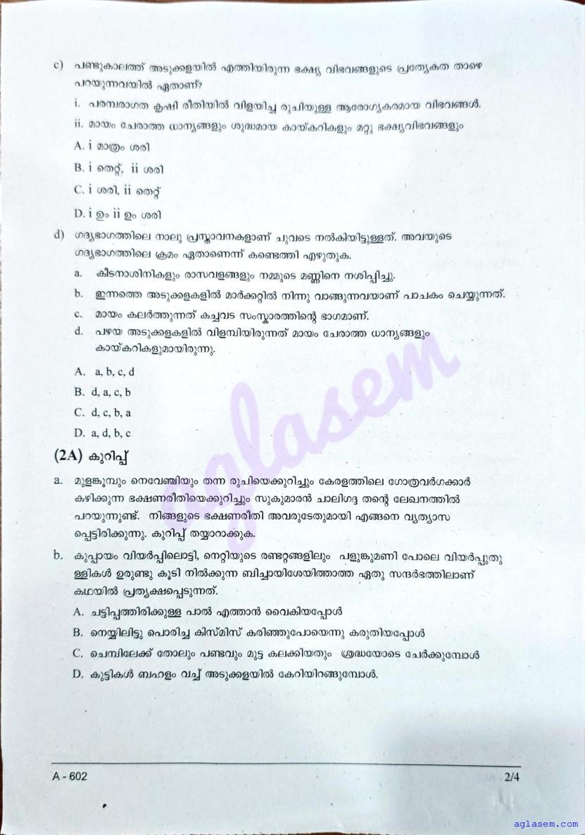 - The Kerala 6th Standard First Term Malayalam I Answer Key contains answers of all questions asked in the test.