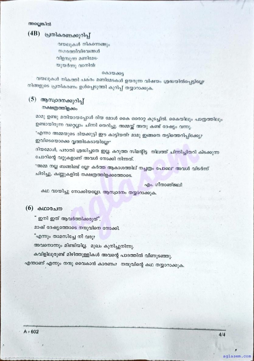 Class 6 Malayalam I Onam Exam Question Paper 2023-24 Click Here to Download Question Paper PDF