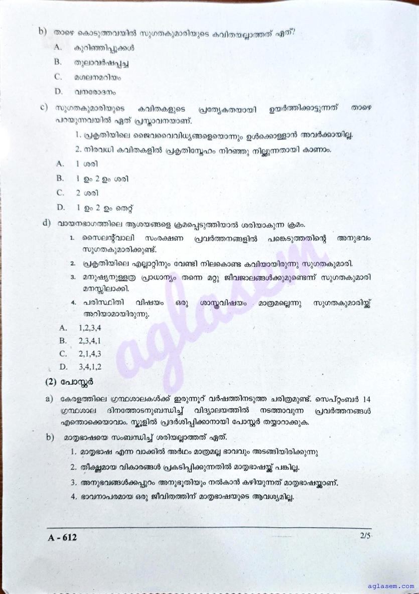- The Kerala 6th Standard First Term Malayalam II Answer Key contains answers of all questions asked in the test.