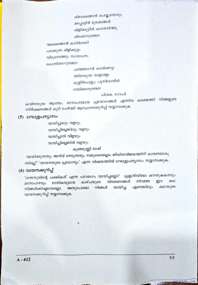 Class 6 Malayalam II Onam Exam Question Paper 2023-24 Click Here to Download Question Paper PDF