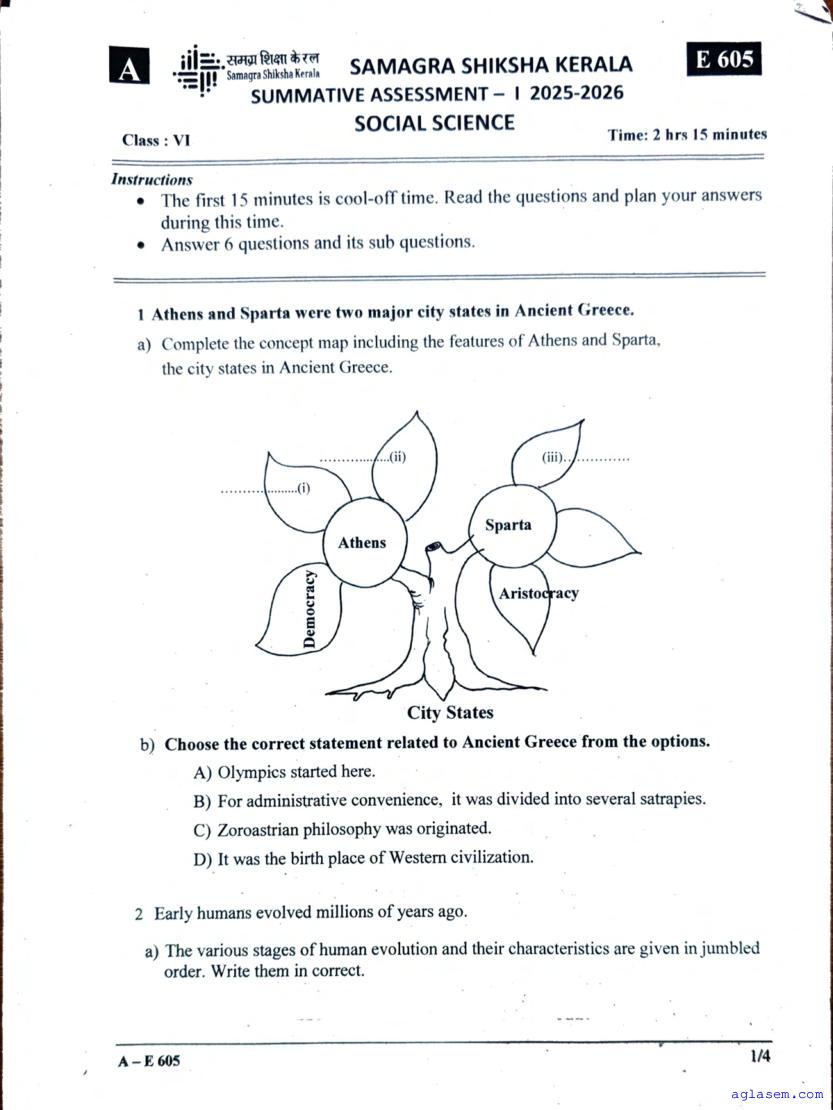 Kerala Class 6 First Term Question Paper 2025 Social Science View Download