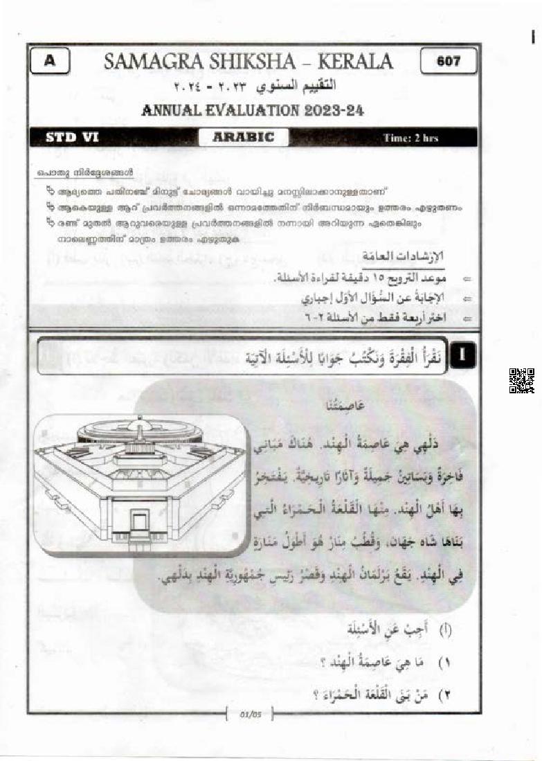 Kerala Class 6th Question Paper 2024 Arabic View Download