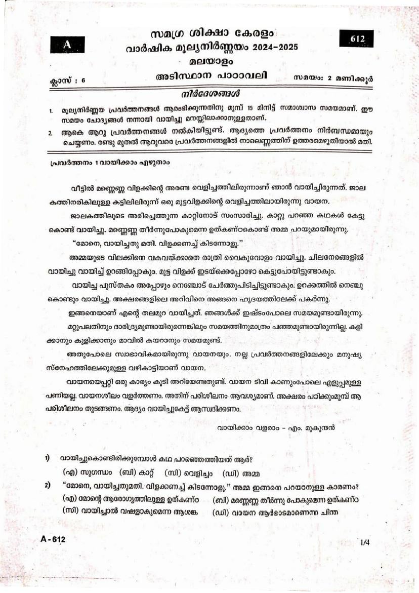Kerala Class 6 Malayalam II Question Paper 2025 Download Link – Click Here to Download Question Paper PDF